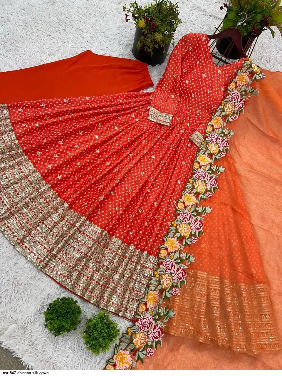*Gown Fabric* : Heavy chinon silk With *Full Heavy Embroidery Sequence Work* with Sleeve*