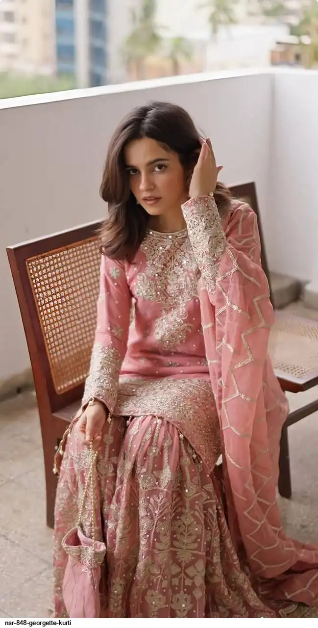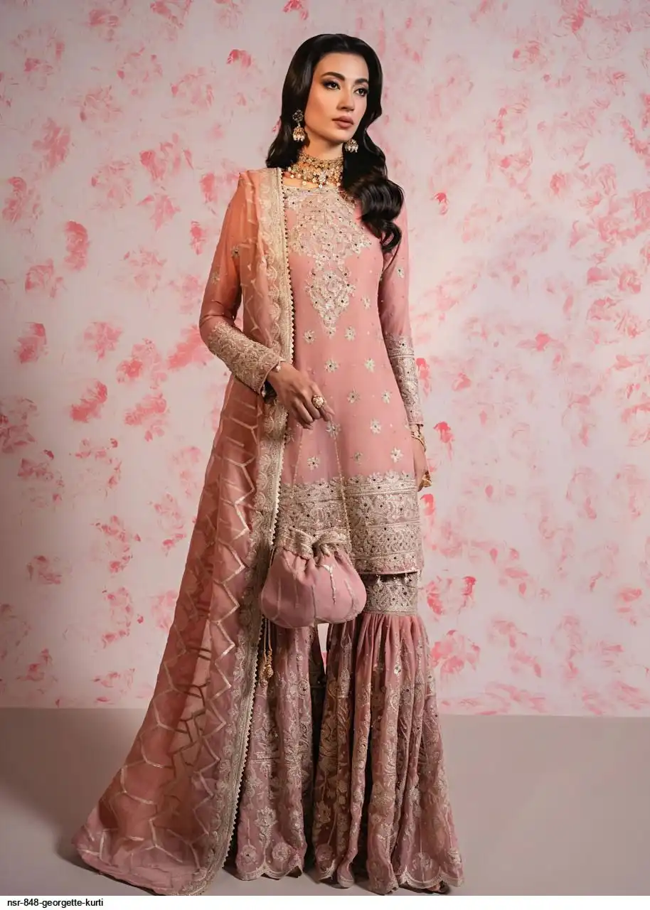 *Top Fabric* : Heavy Faux Georgette With Heavy Embroidery Sequence Work With rivet moti With Full Sleeve