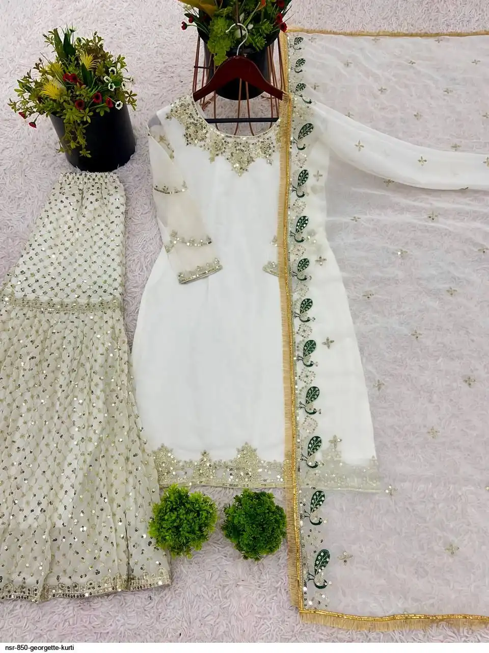 *Plazzo Fabrics* :Heavy Faux Georgette With Full Heavy 5mm Embroidery Sequence With Fully Flair