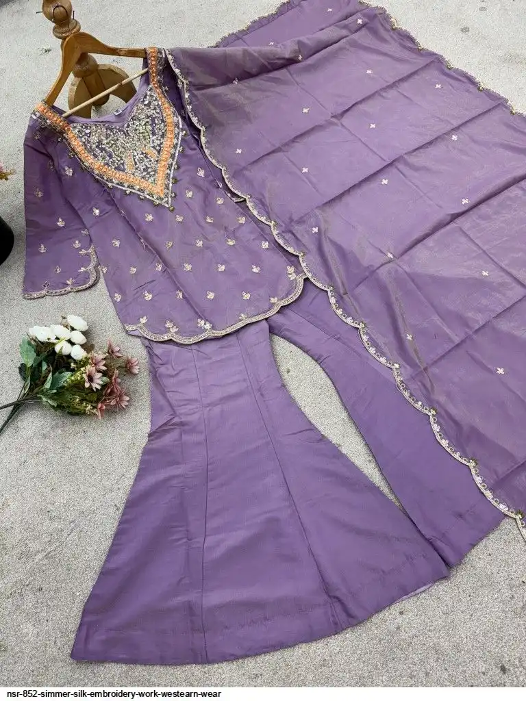 Pent Fabrics :heavy simar silk With Embroidery Sequence work with Elastic