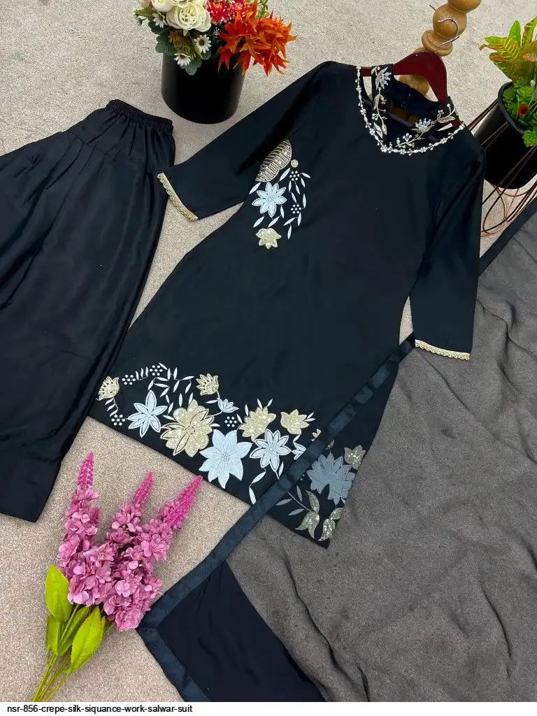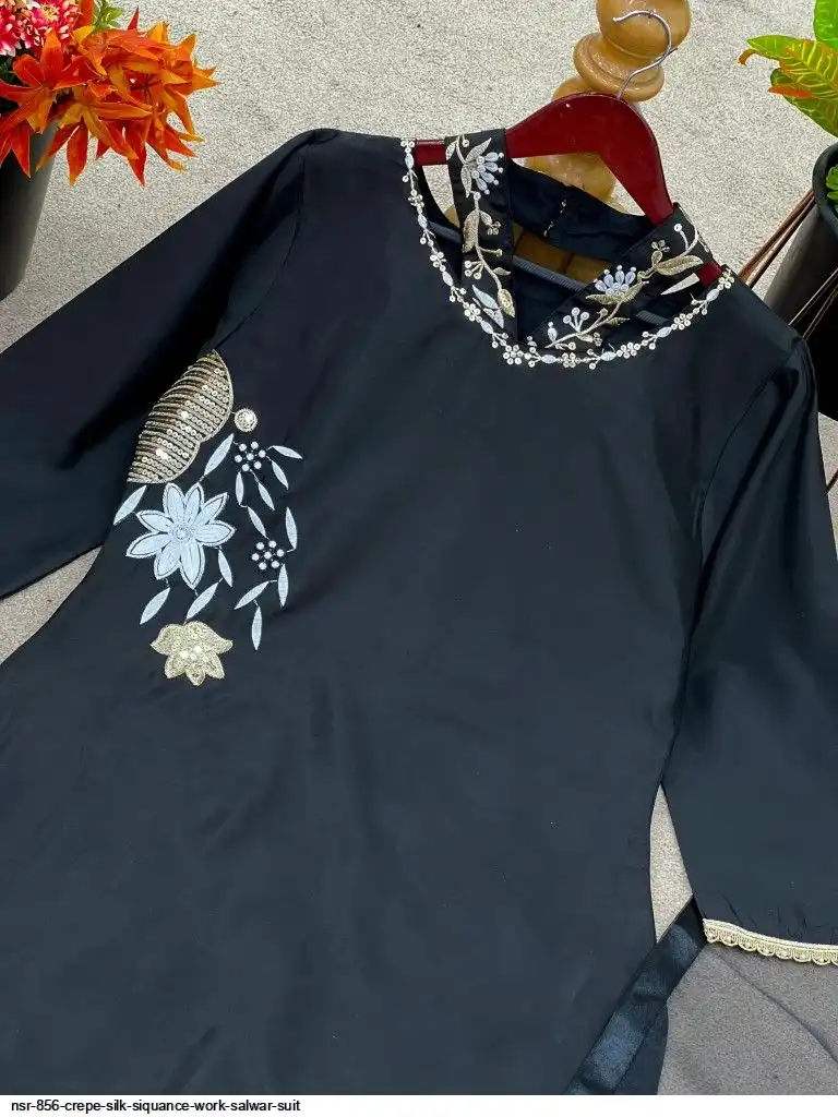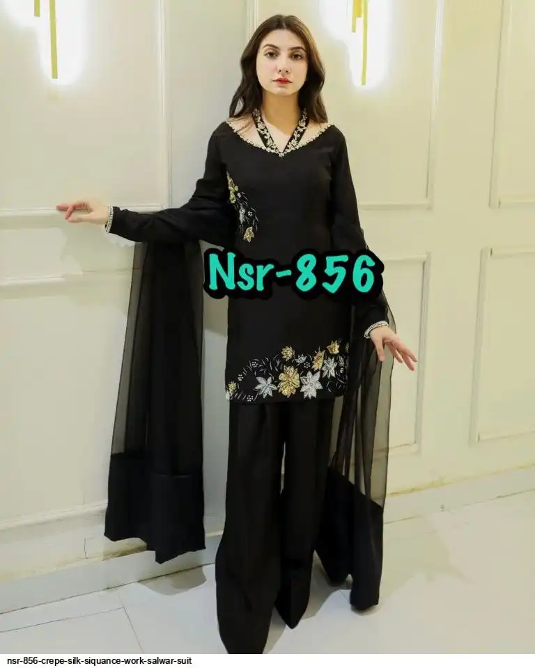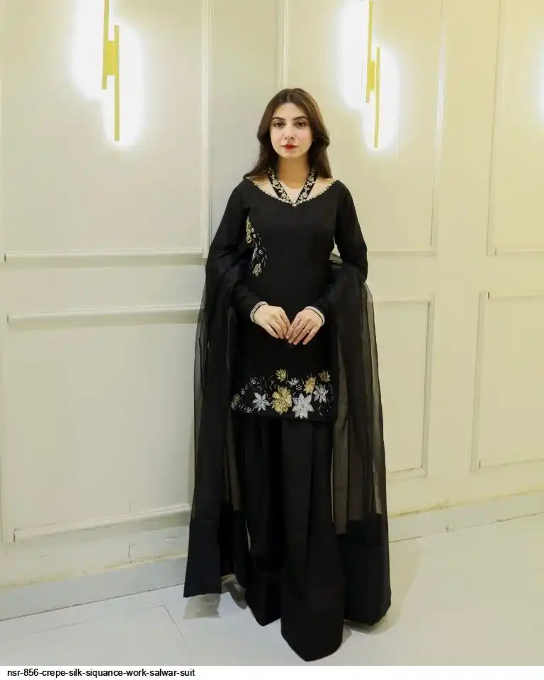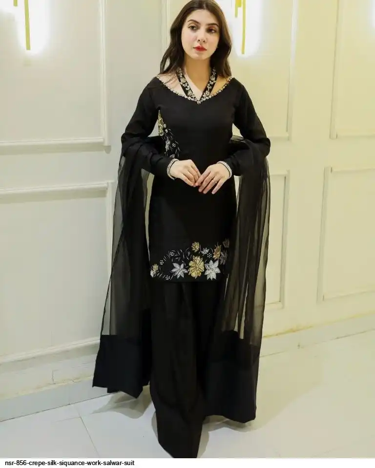 Top Fabric :Natural Crep Silk With Embrodary Siquance Work with Full Sleeve