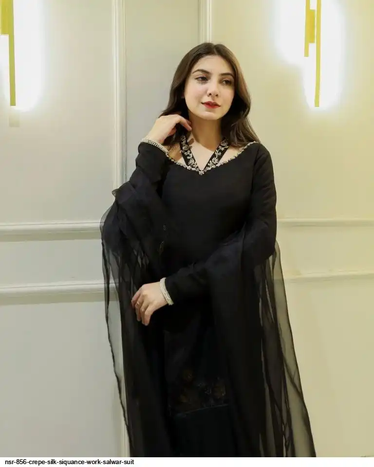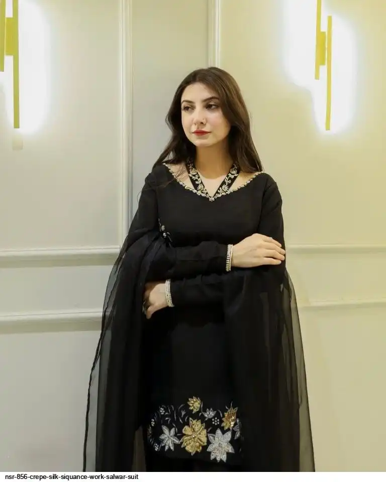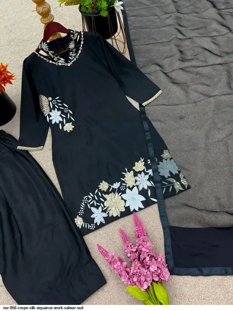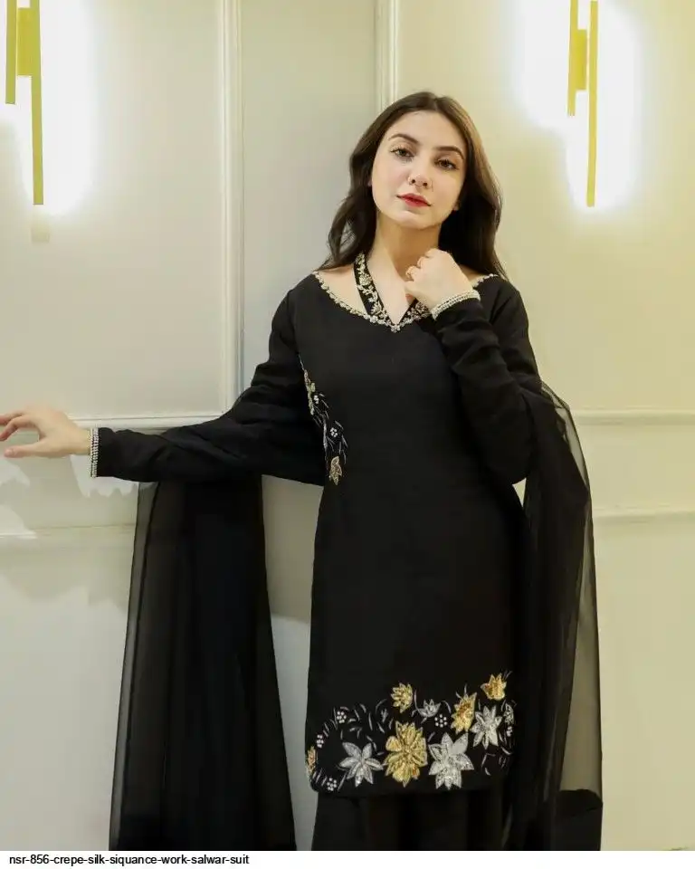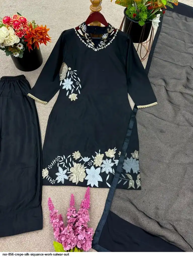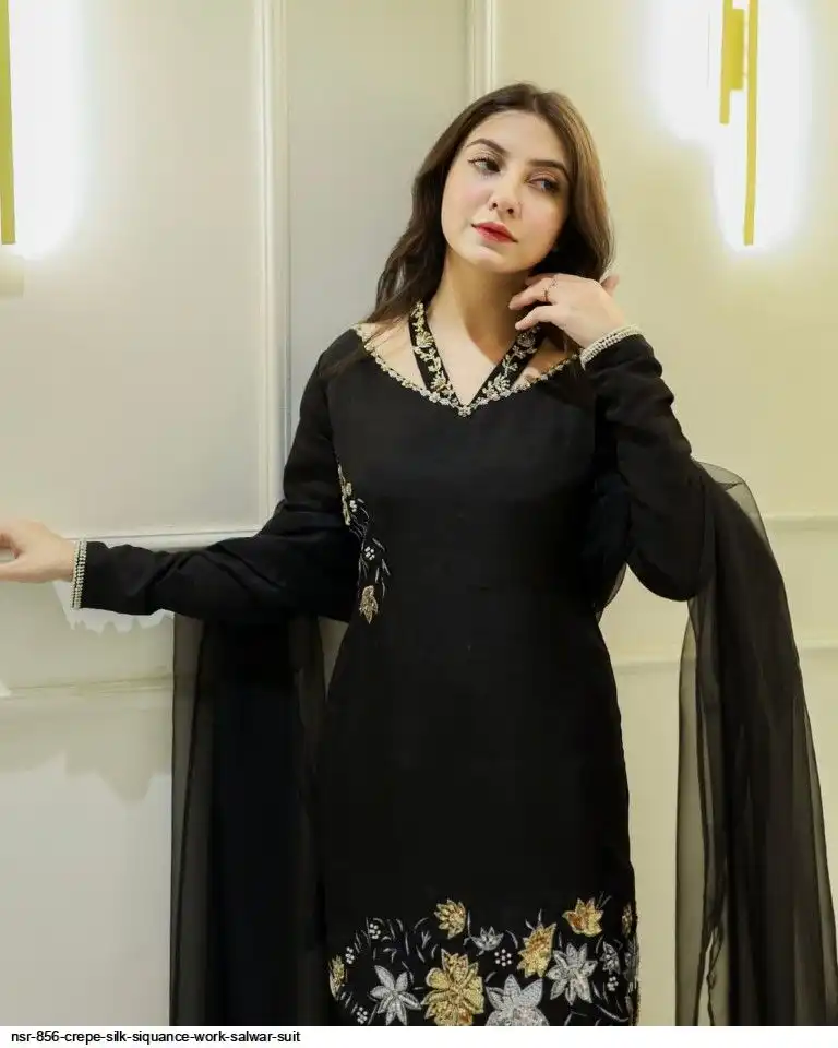 Top Fabric :Natural Crep Silk With Embrodary Siquance Work with Full Sleeve