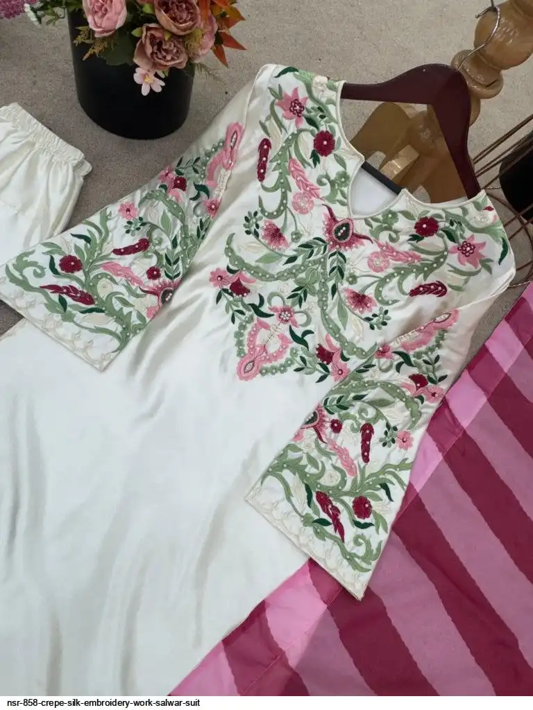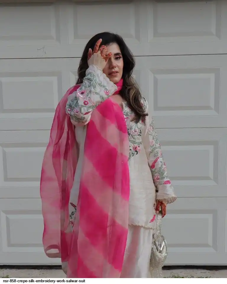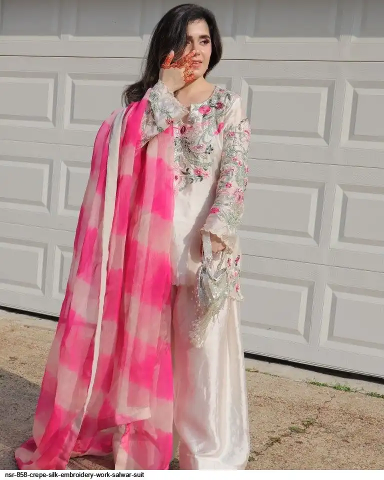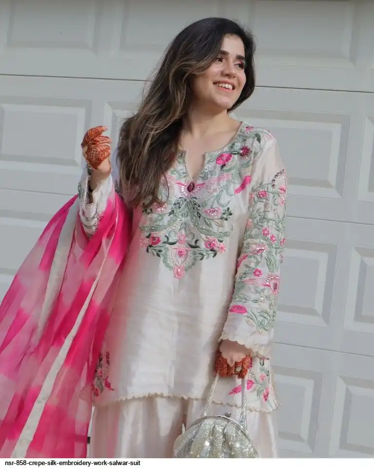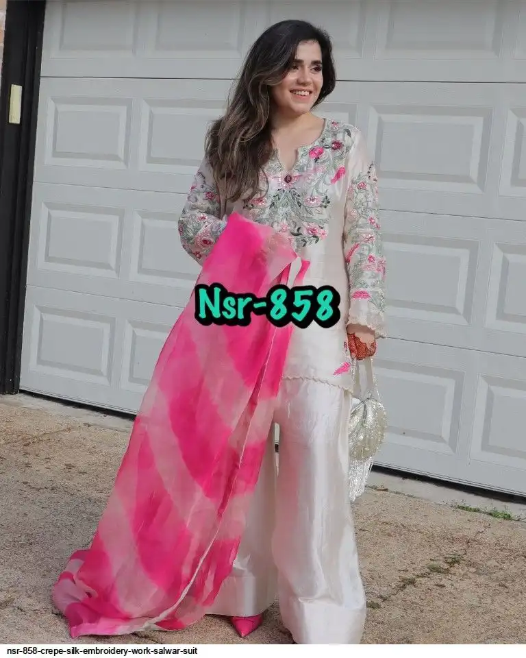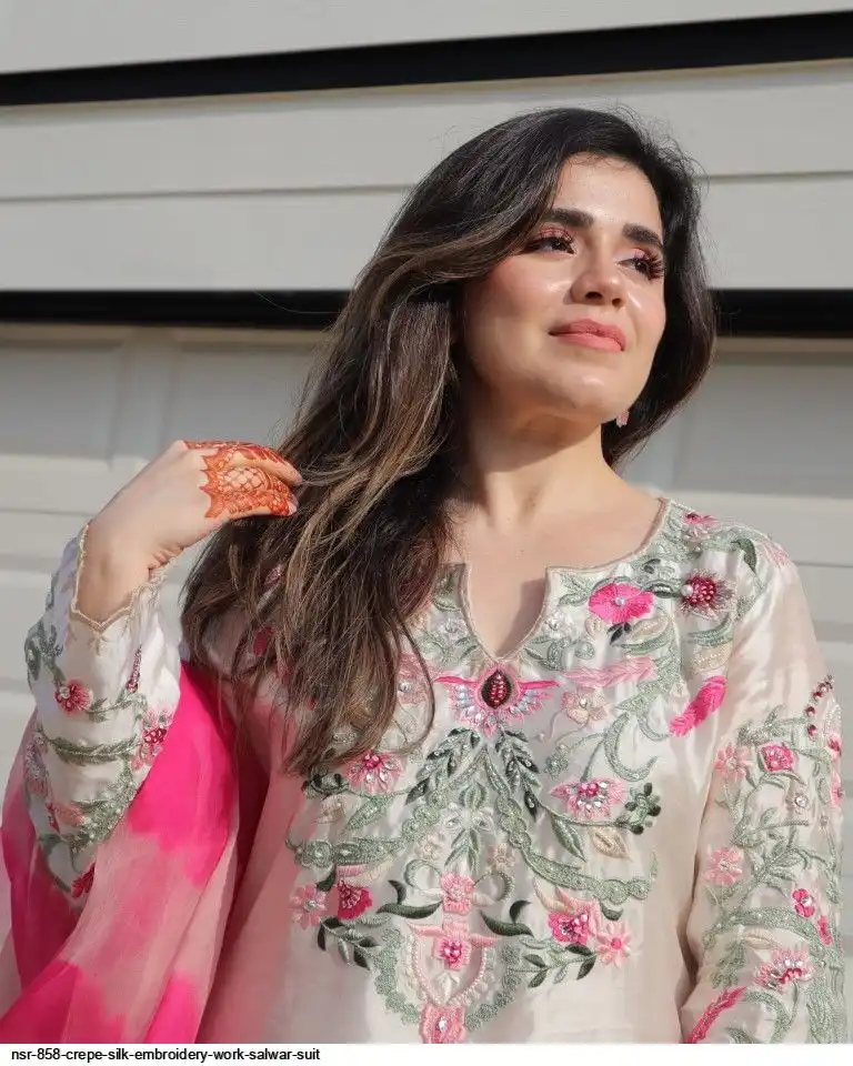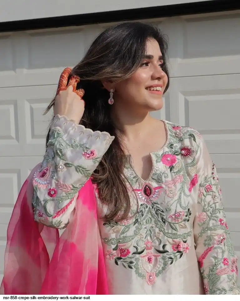 Top Fabric :Natural Crep Silk With Embrodary Siquance Work with Full Sleeve