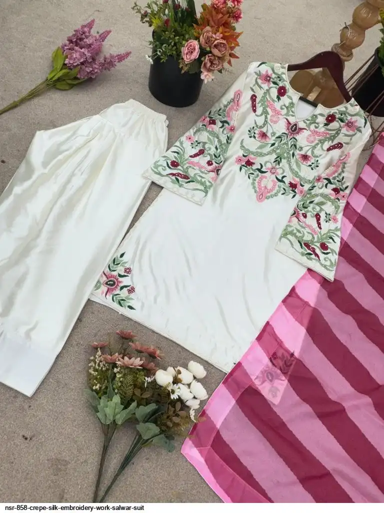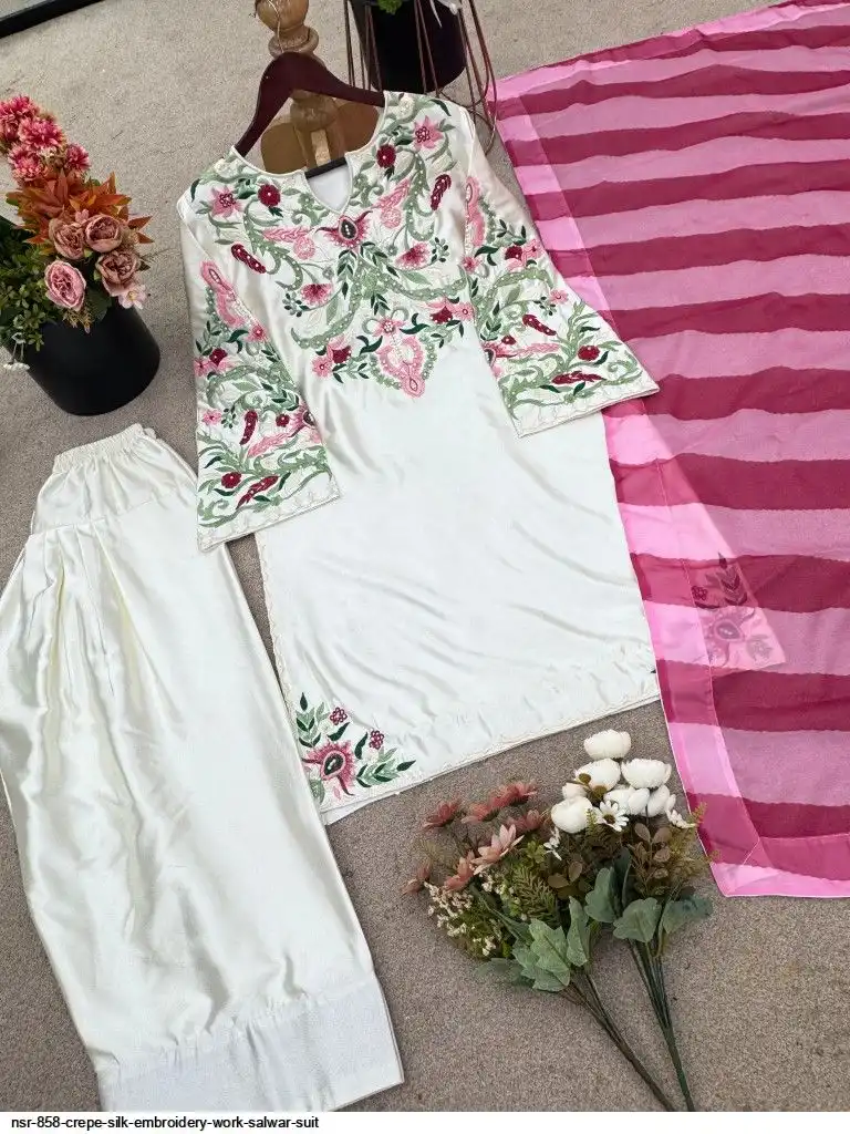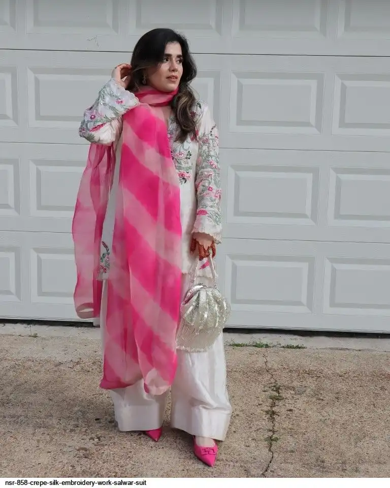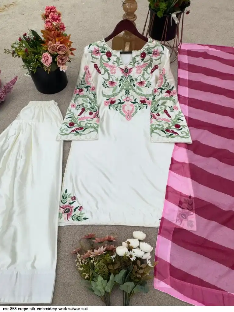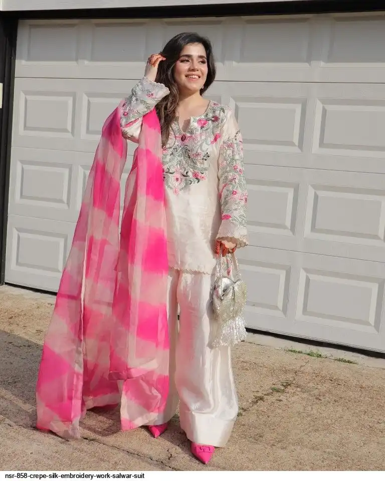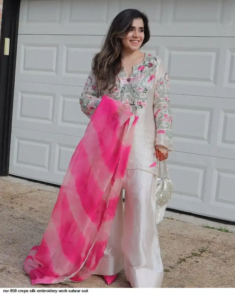 Top Fabric :Natural Crep Silk With Embrodary Siquance Work with Full Sleeve