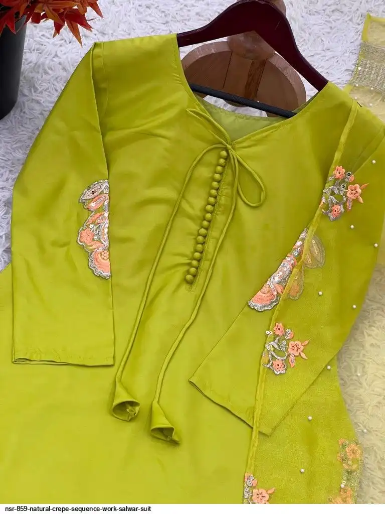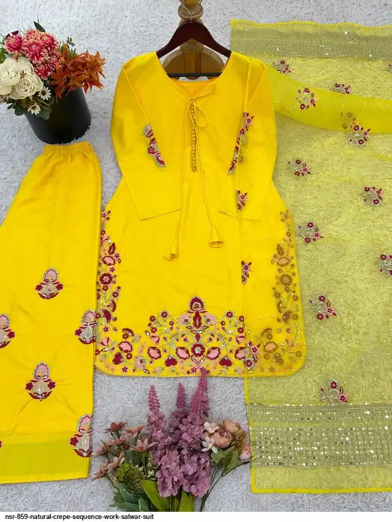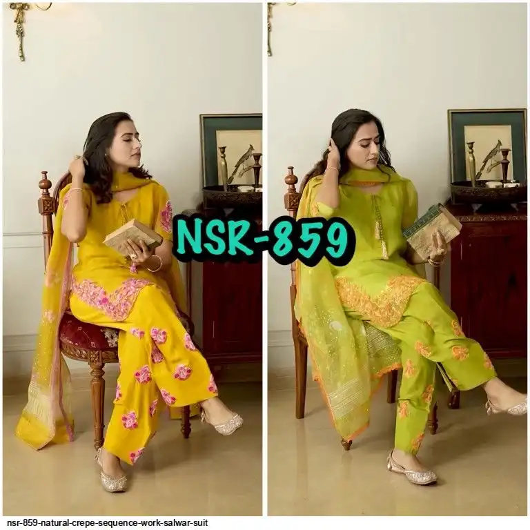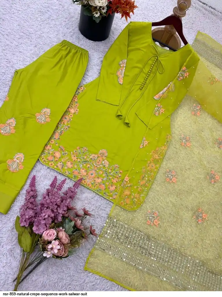 Top Fabric :Natural Crep Silk With Embrodary Siquance Work with Full Sleeve