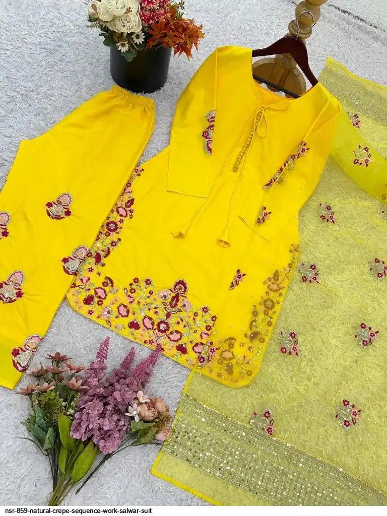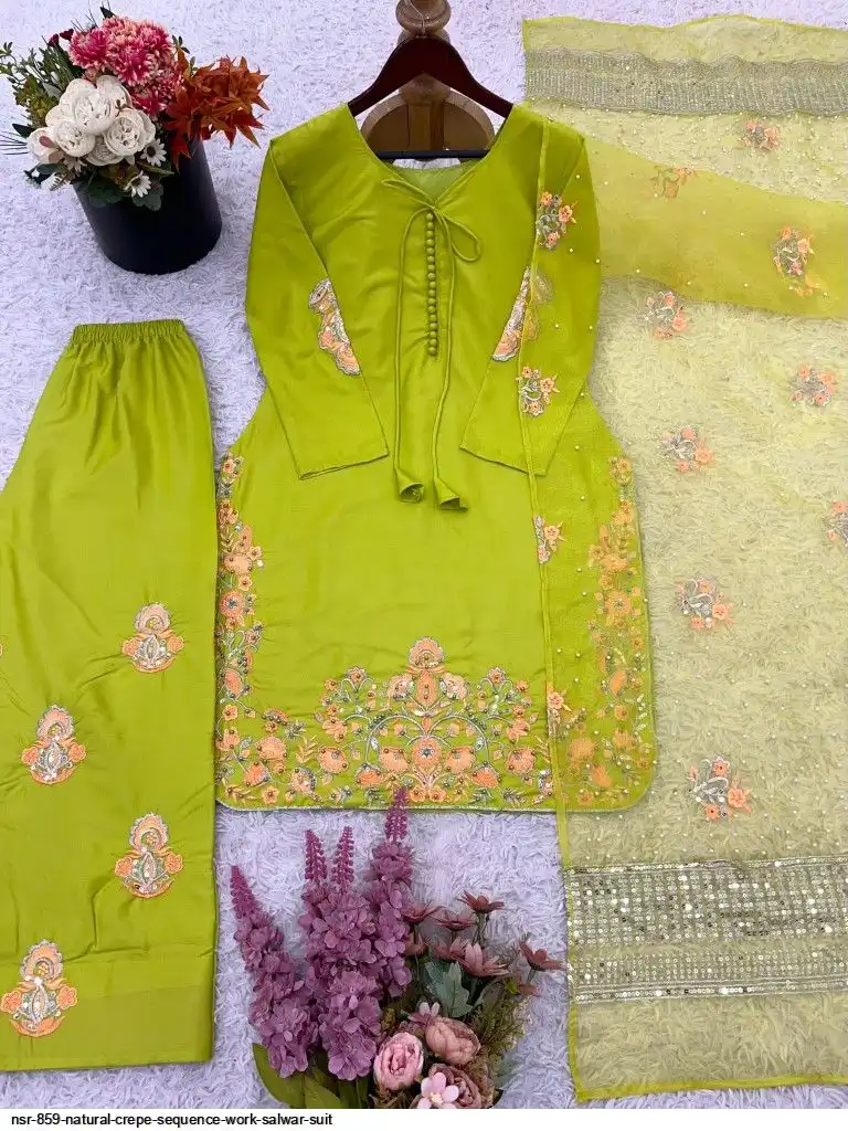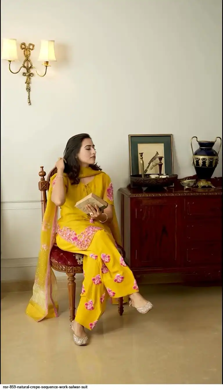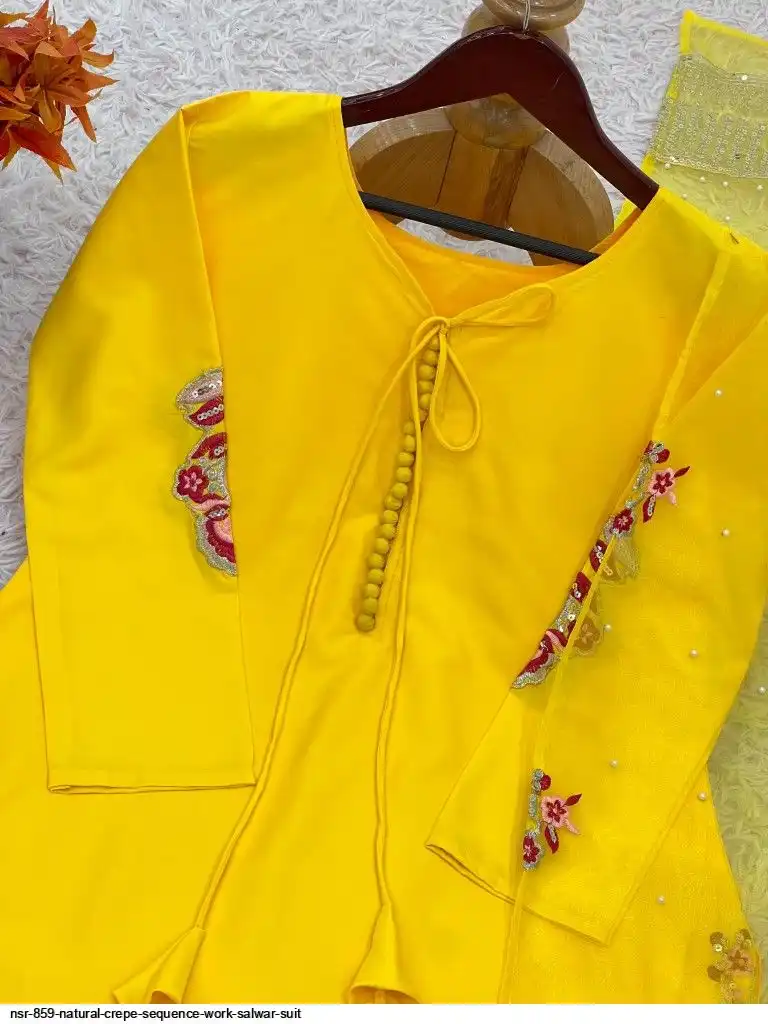 Top Fabric :Natural Crep Silk With Embrodary Siquance Work with Full Sleeve