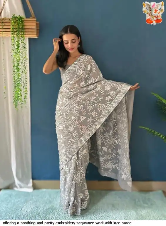 SAREE WORK- Embroidery 🪡 Seqwance work with lace