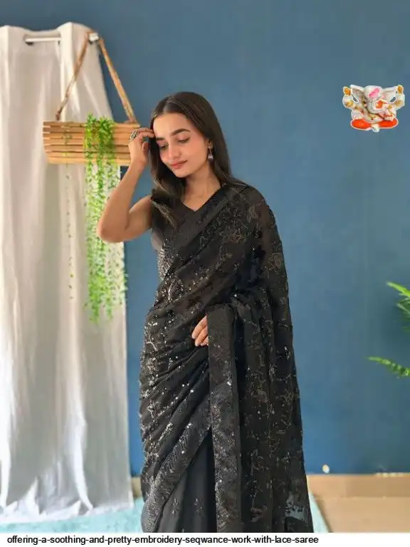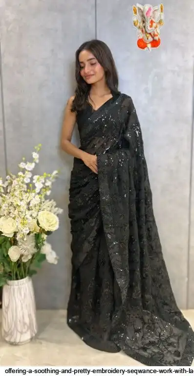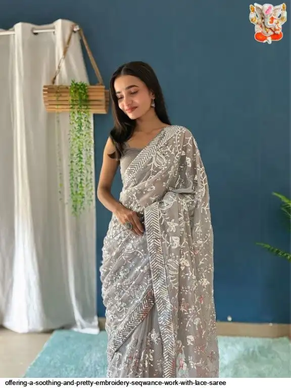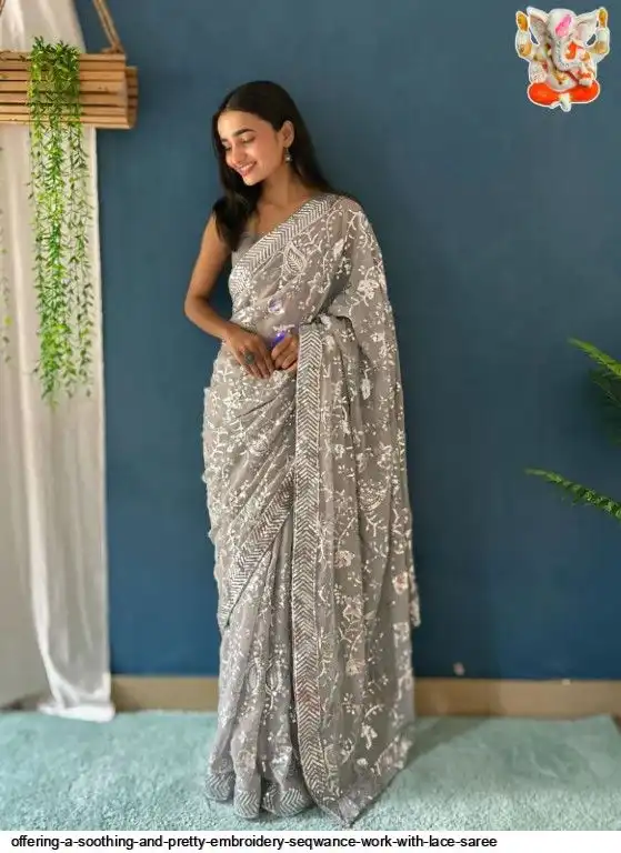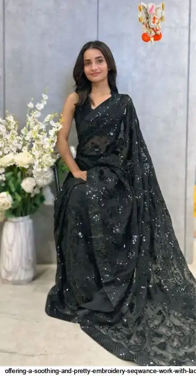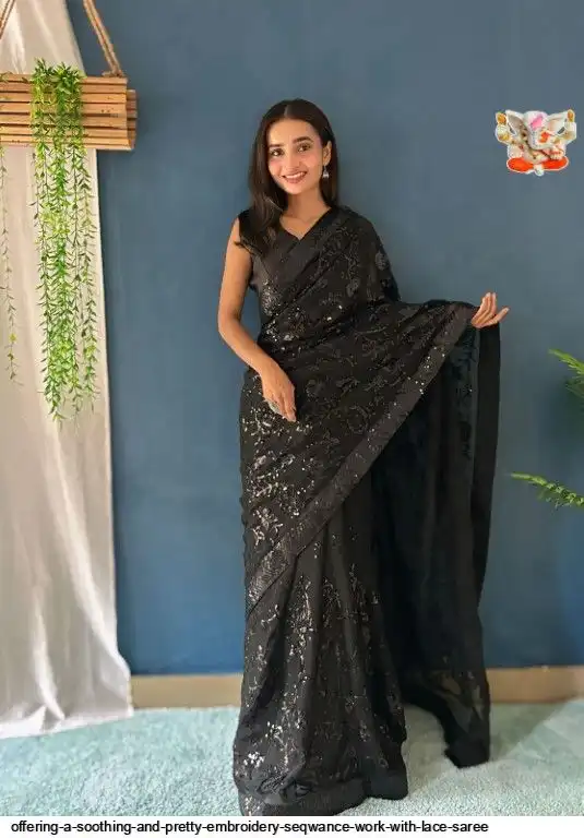 Classic and elegant, this saree will be a perfect addition to your ethnic wardrobe, offering a soothing and pretty wibe the adornment of seqwance work makes it impeccable