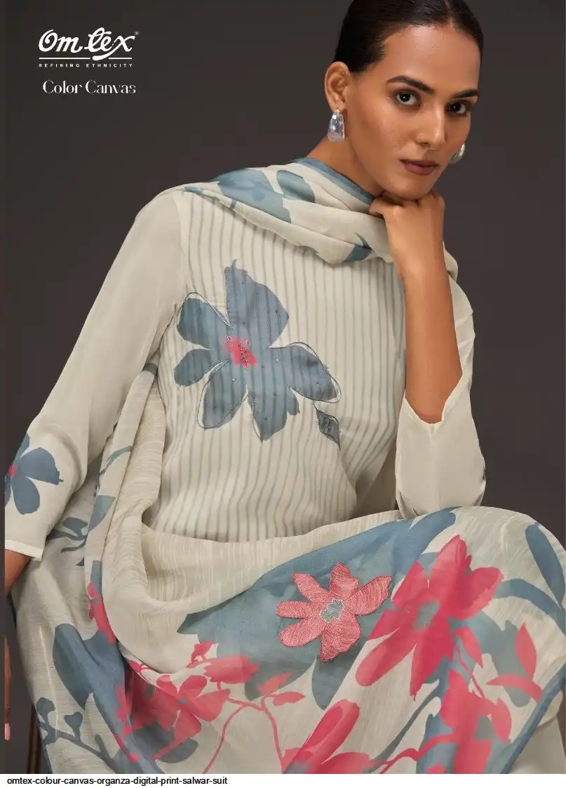 ORGANZA DIGITAL PRINT WITH HAND WORK
