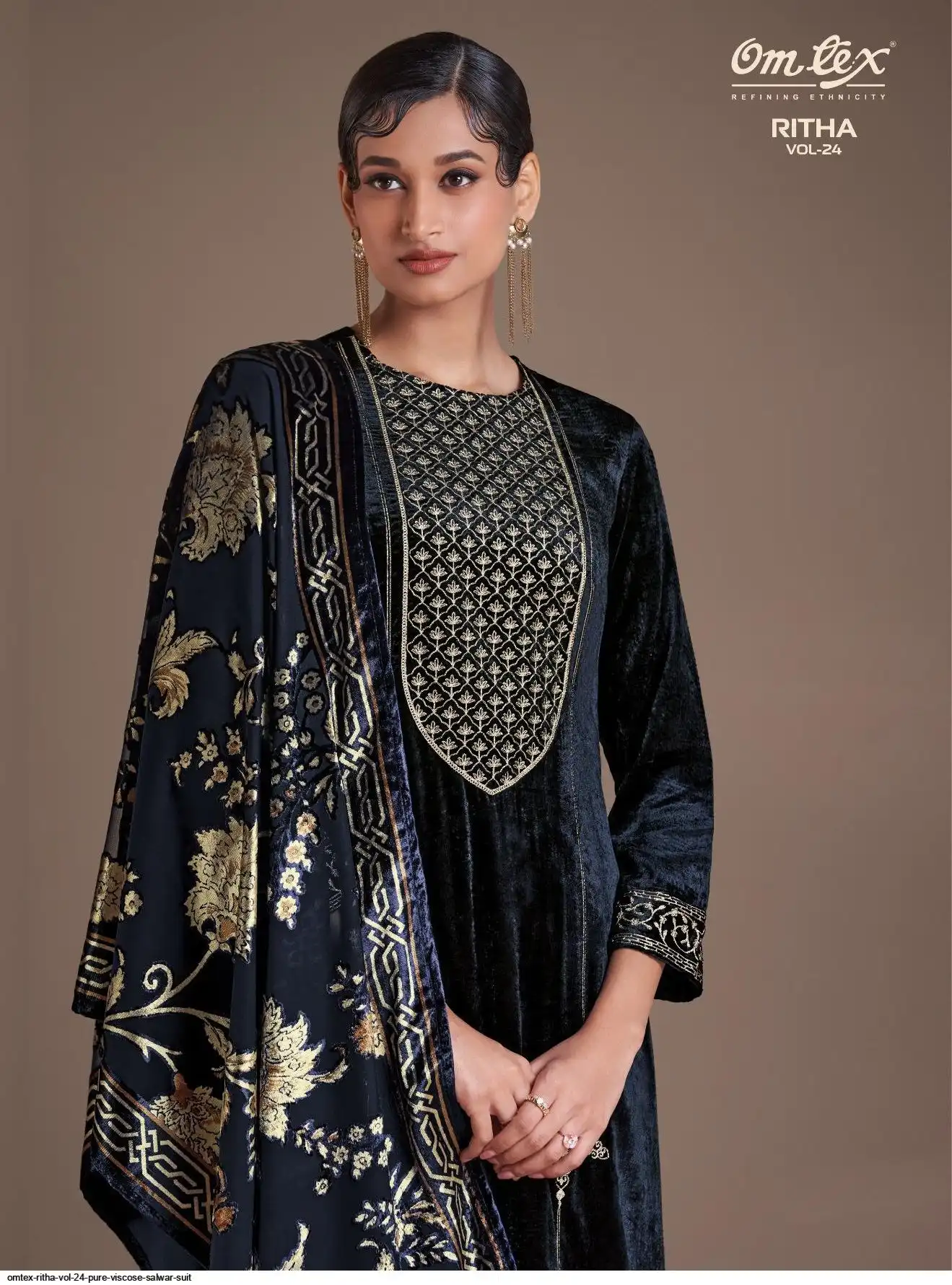 PURE VISCOSE VELVET WITH EMBROIDERY