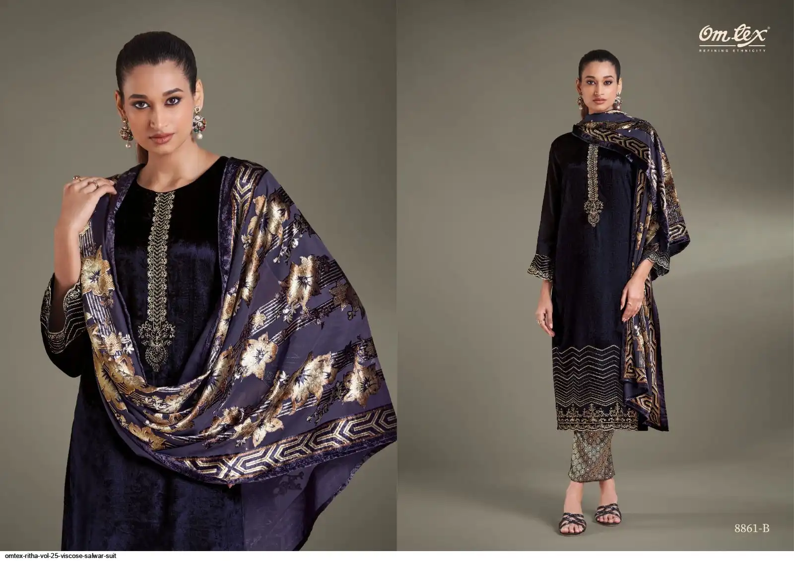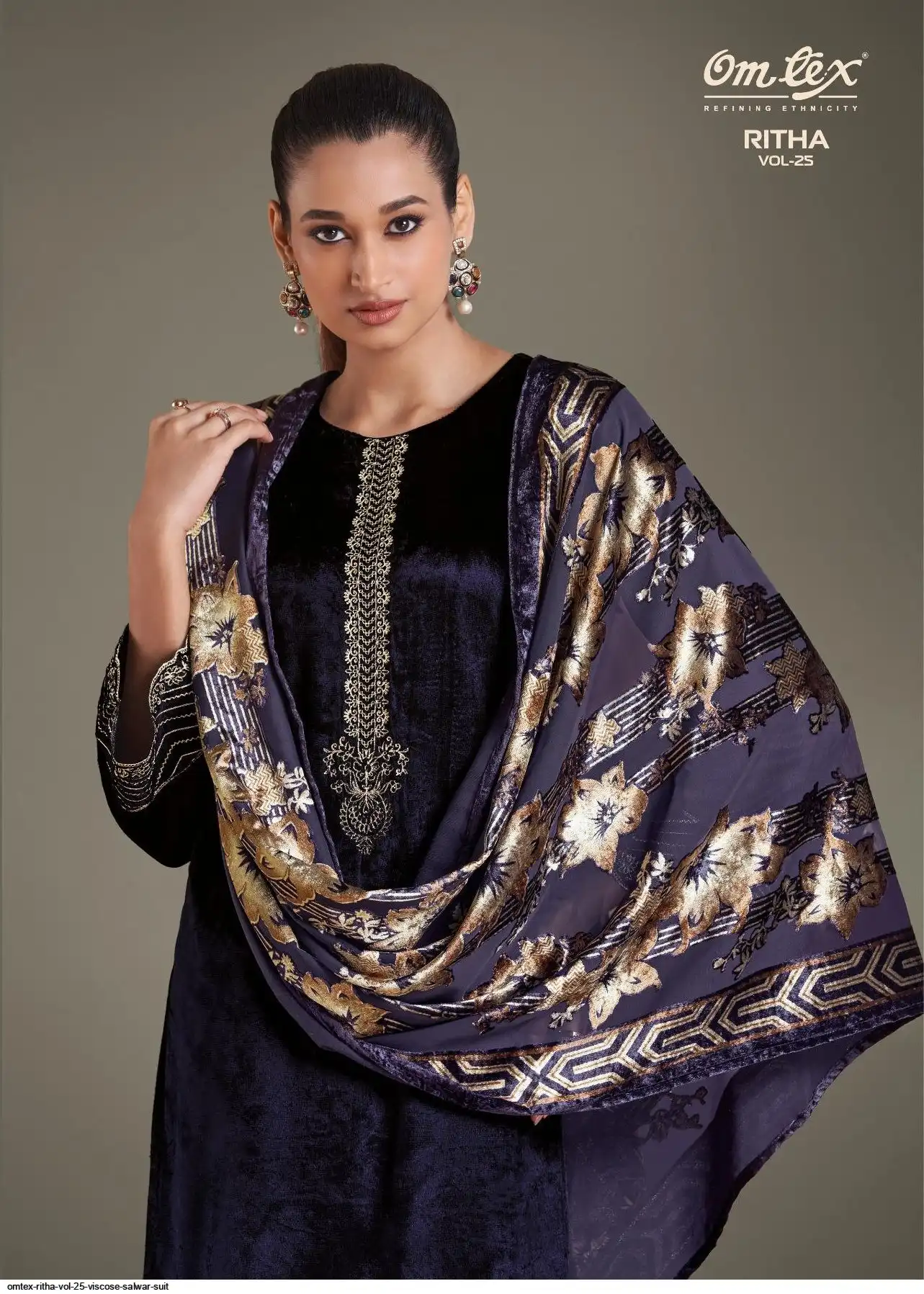 PURE VISCOSE VELVET WITH EMBROIDERY