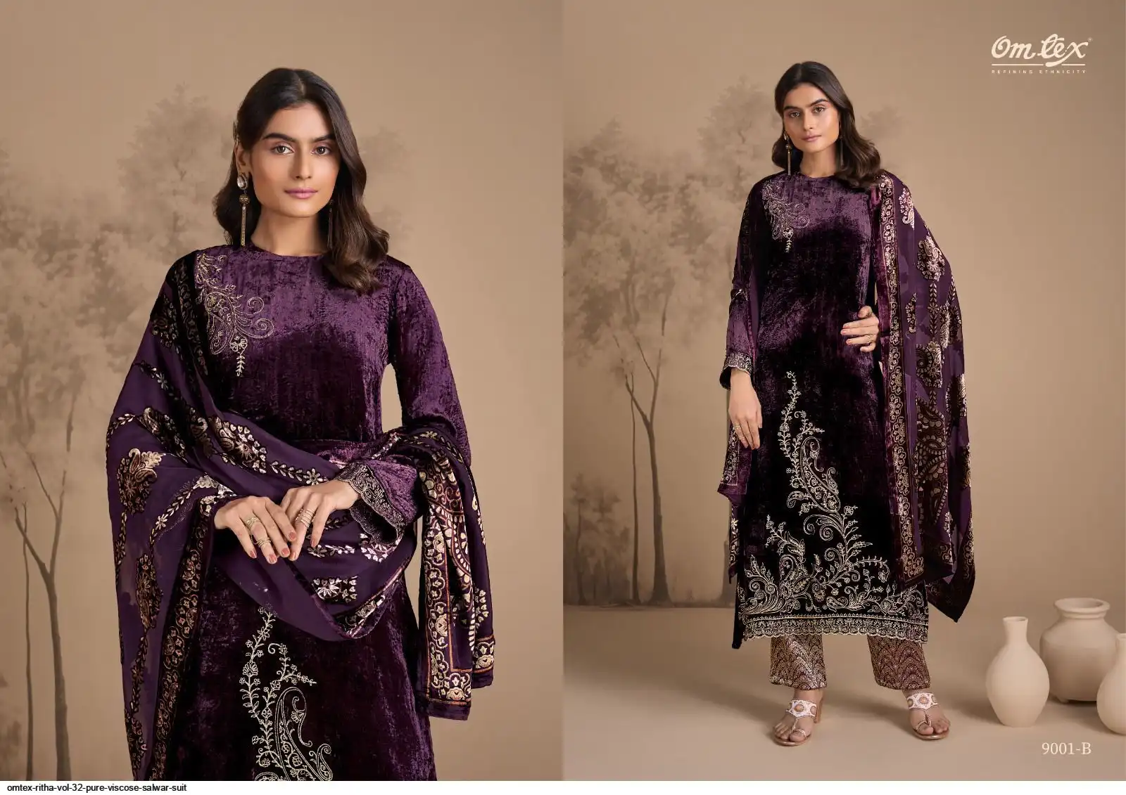 PURE VISCOSE VELVET WITH EMBROIDERY
