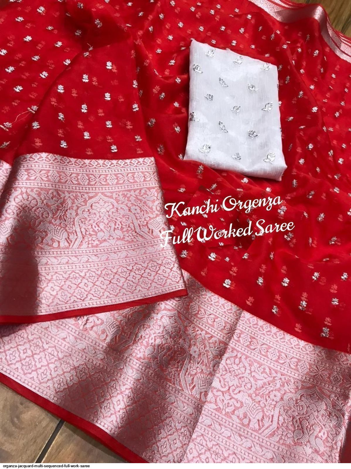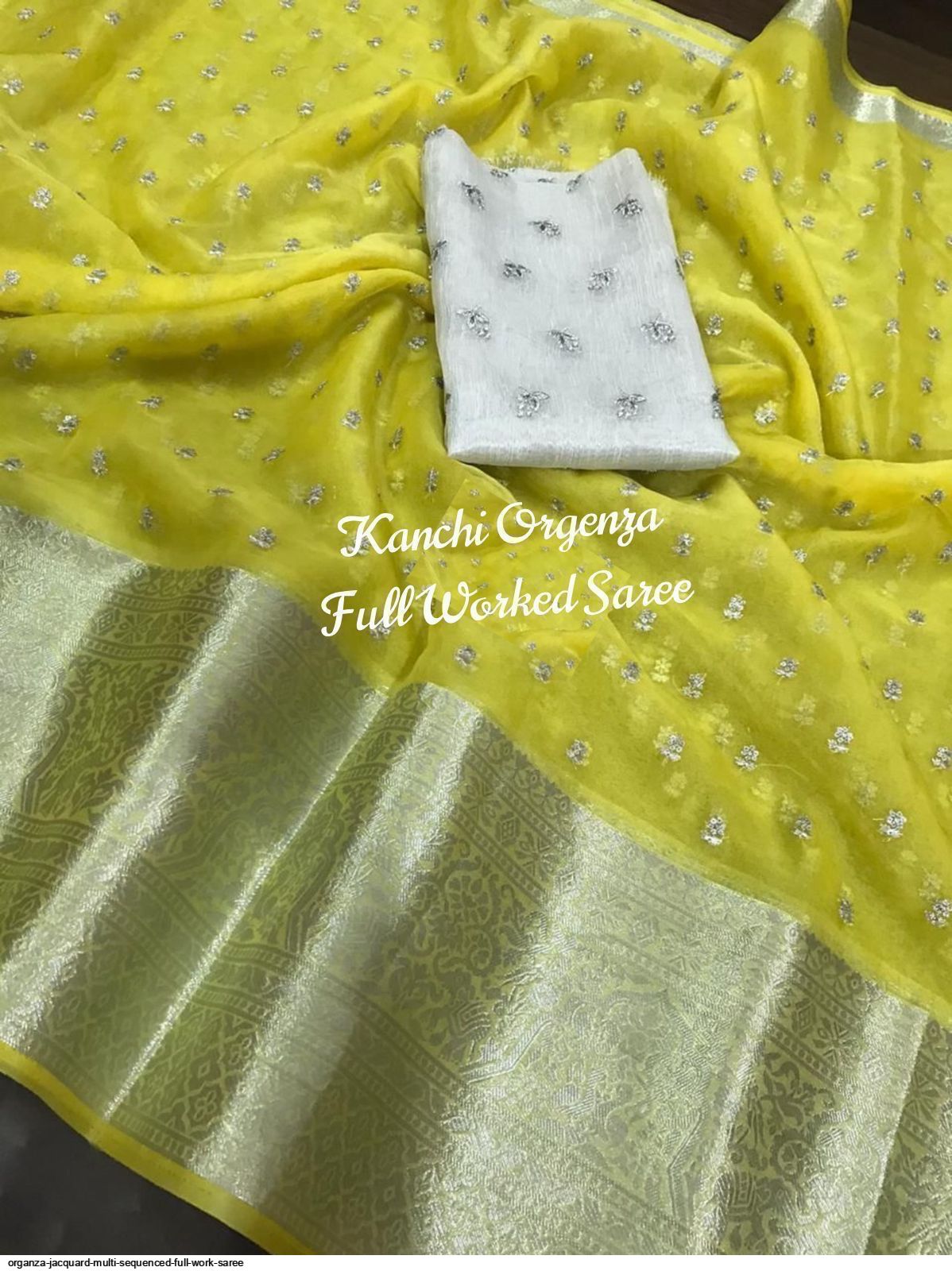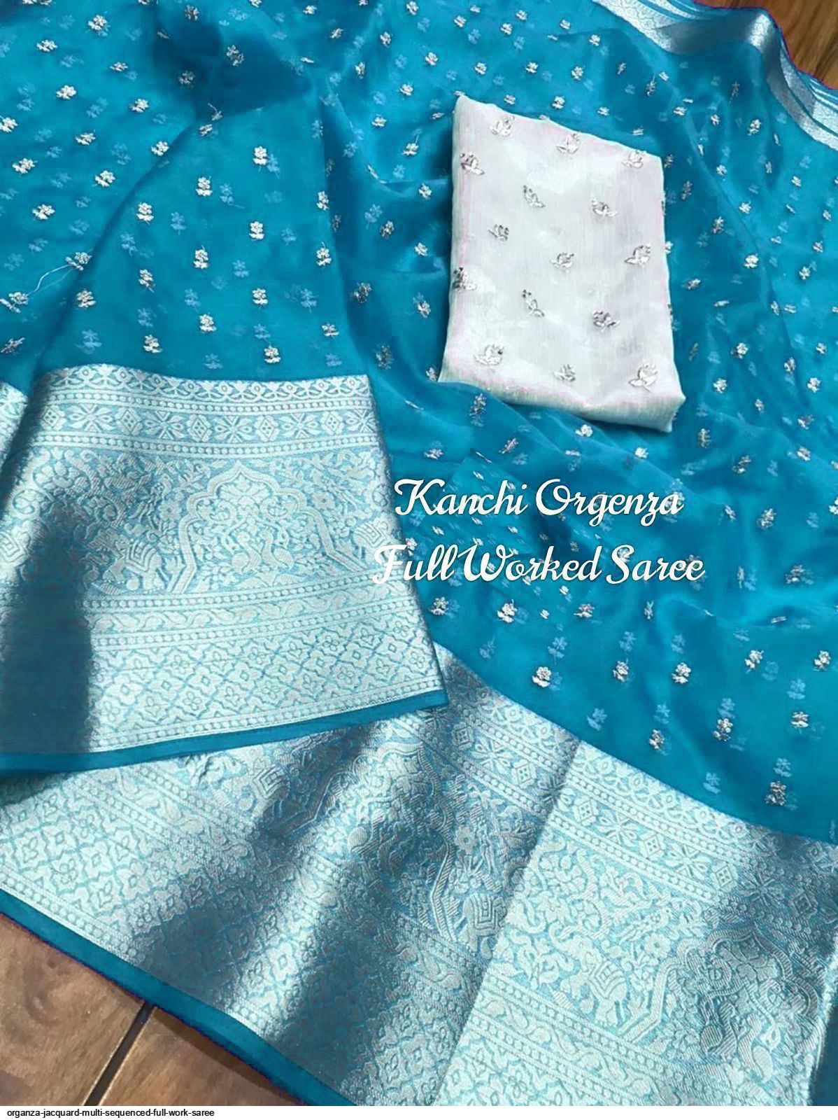 ORGANZA JACQUARD MULTI SEQUENCED FULL WORK SAREE