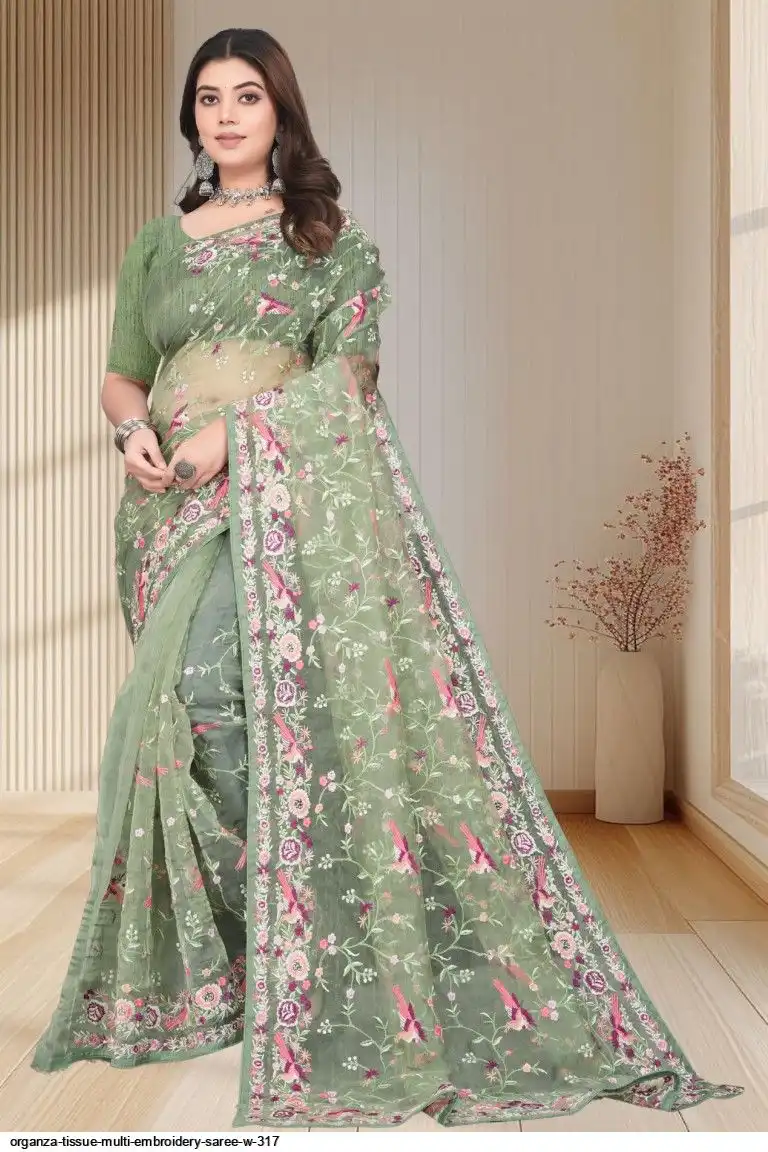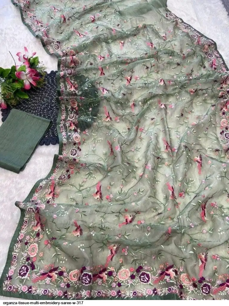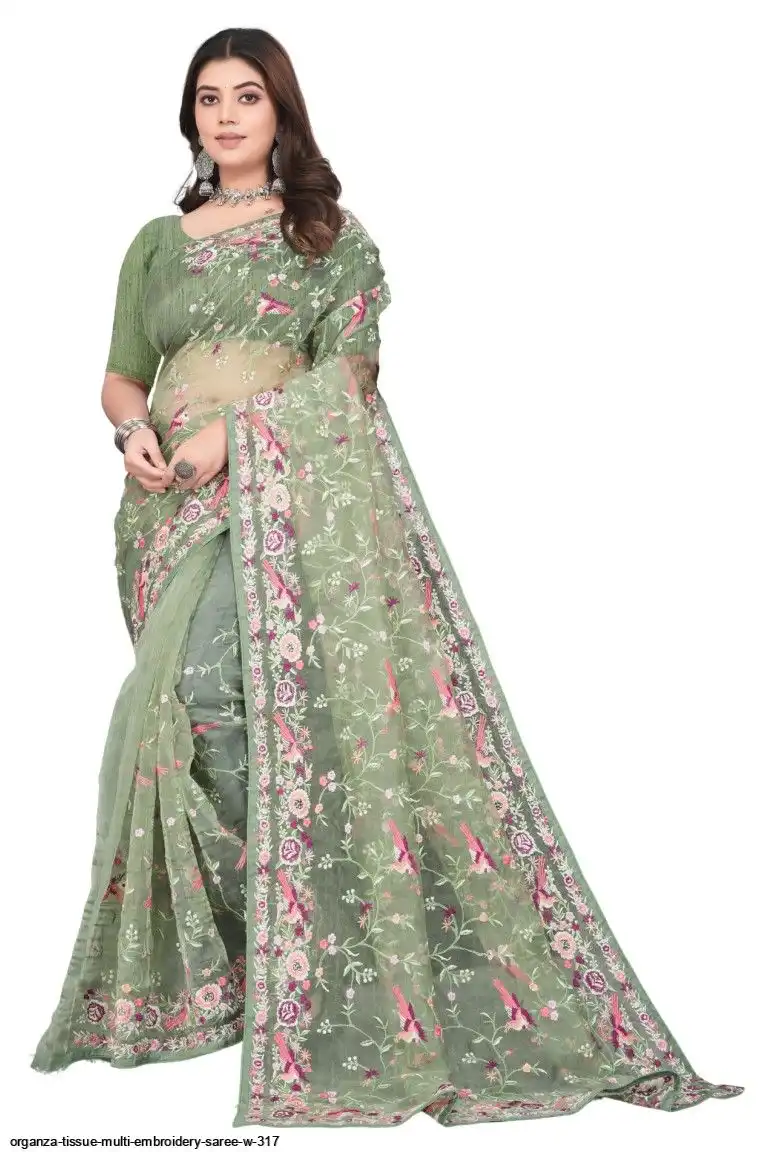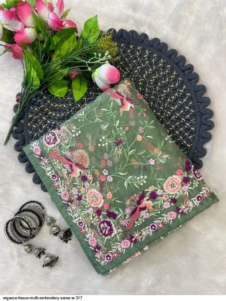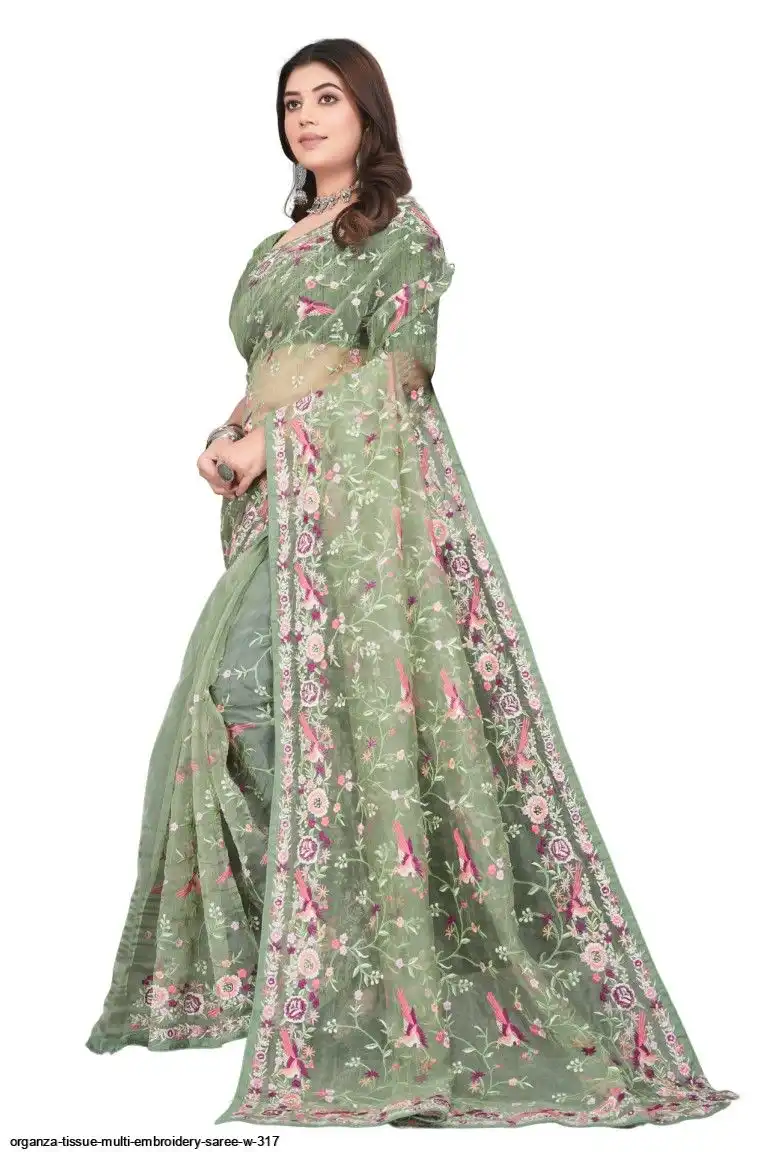 SAREE :- Tissue Organza With Beautiful Multi Embroidery C-Pallu Work