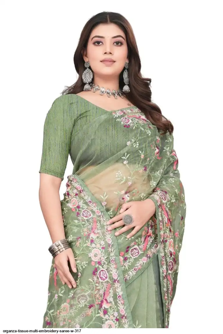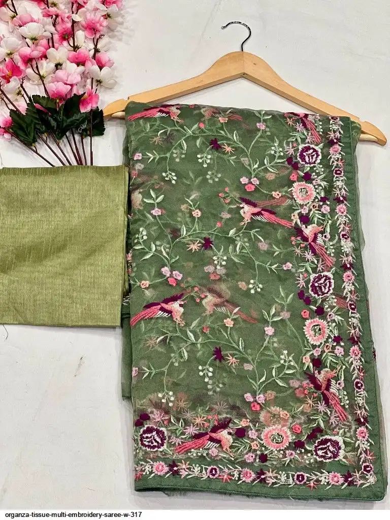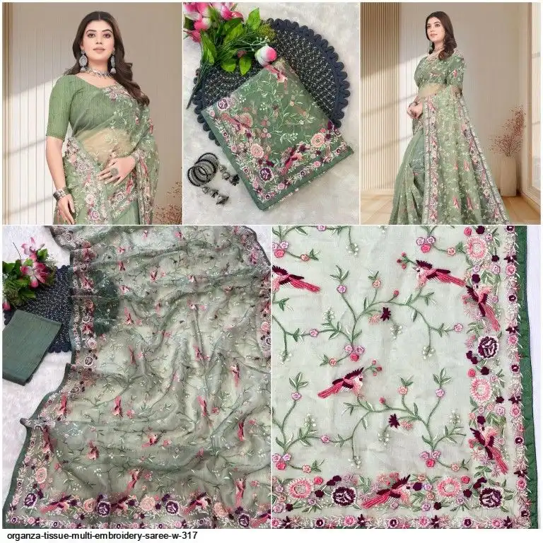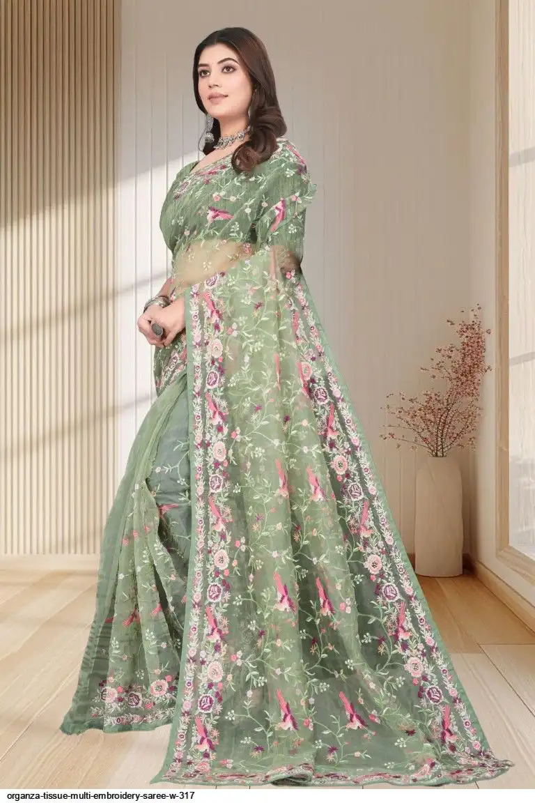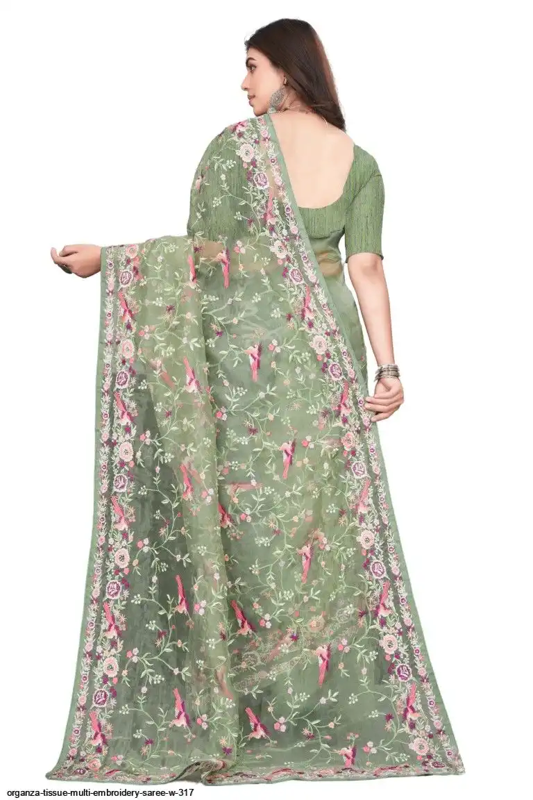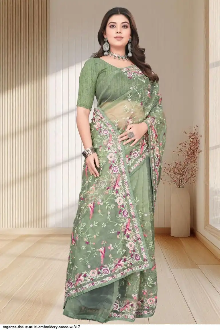 SAREE :- Tissue Organza With Beautiful Multi Embroidery C-Pallu Work