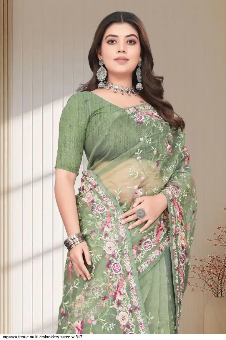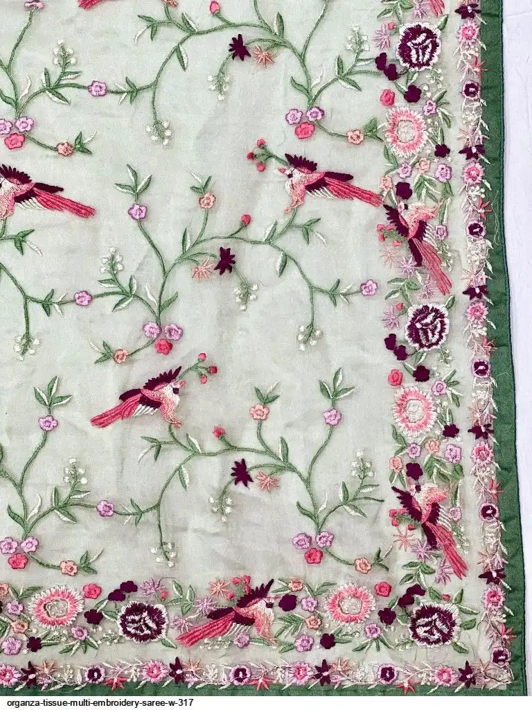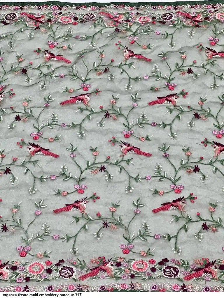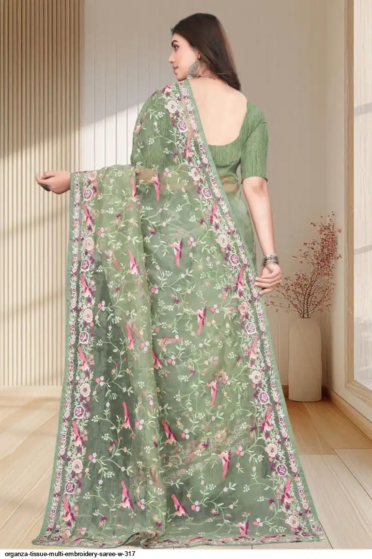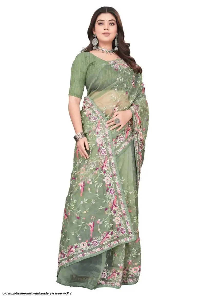 SAREE :- Tissue Organza With Beautiful Multi Embroidery C-Pallu Work