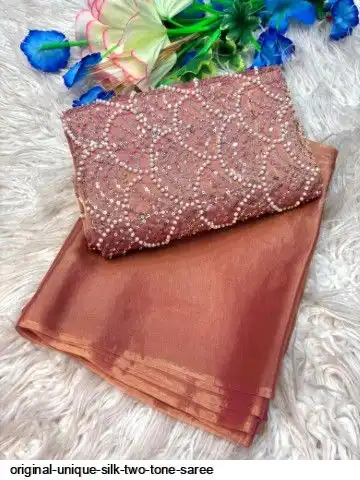 Original space silk two tone fabric with handwork trending blouse party wear saree