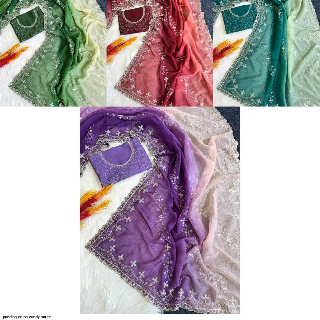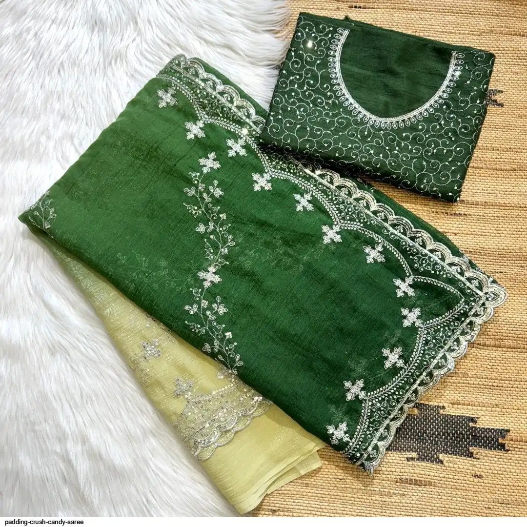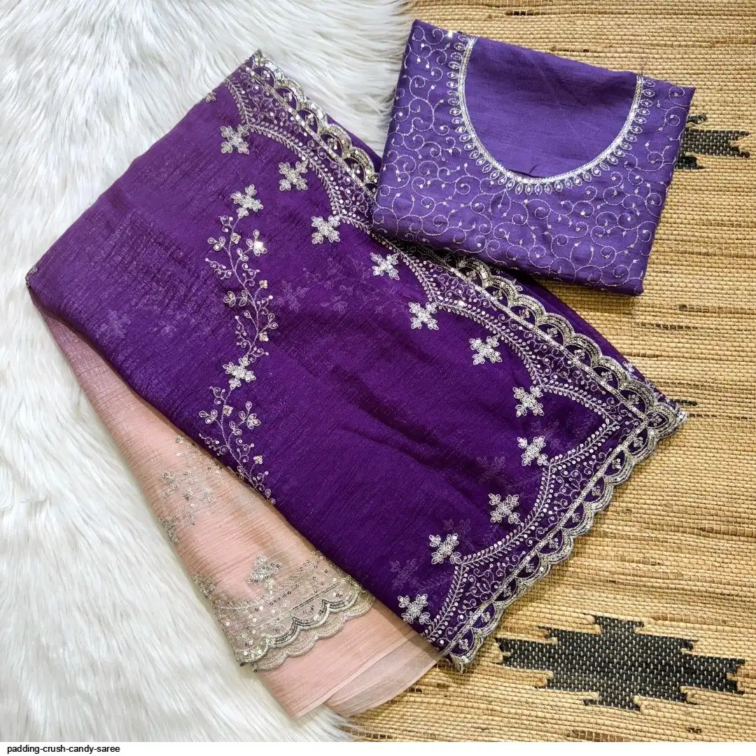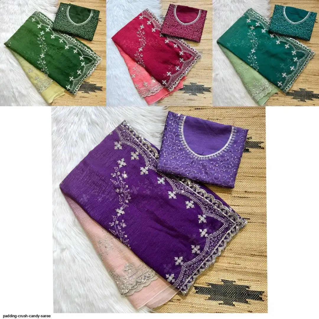 Padding crush candy saree with beautiful embroidery touch up of sequence and unstitch silk blouse