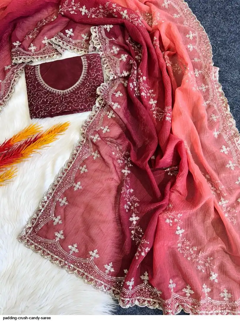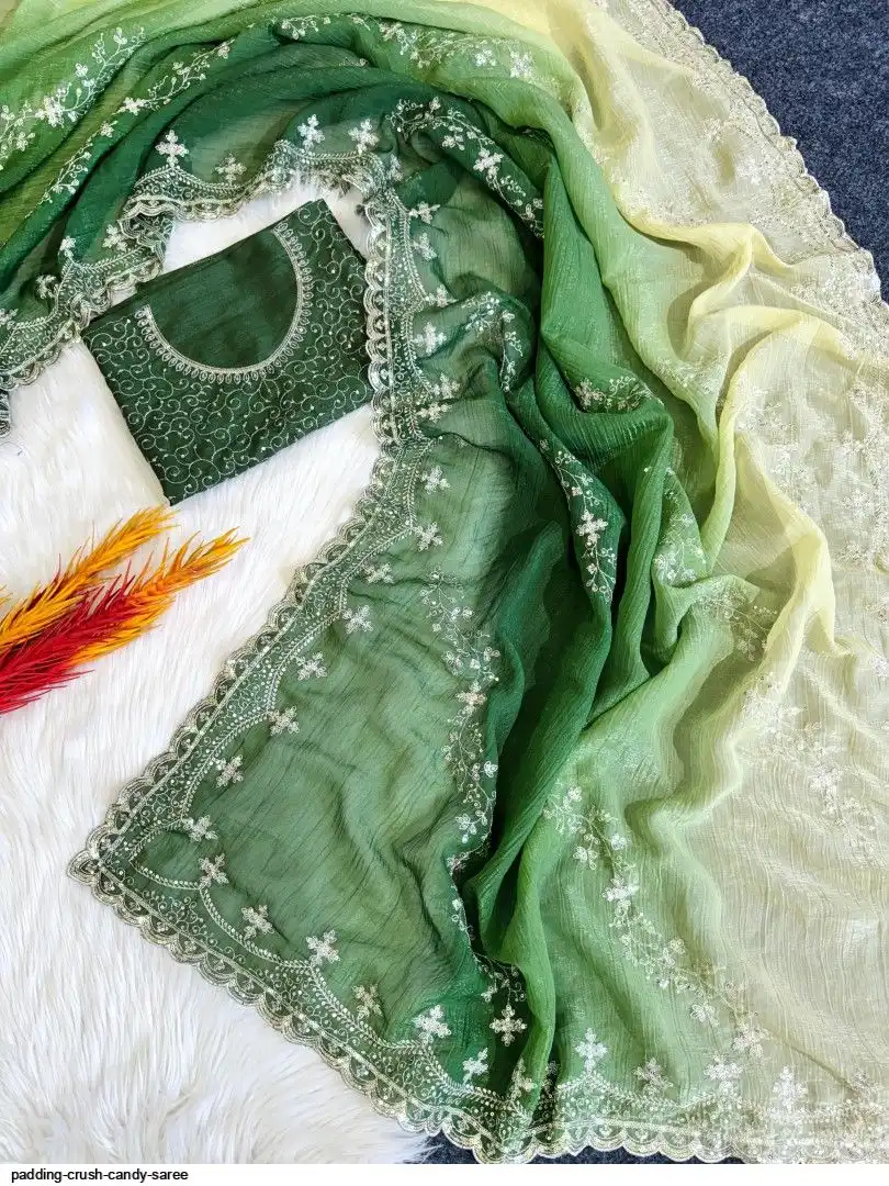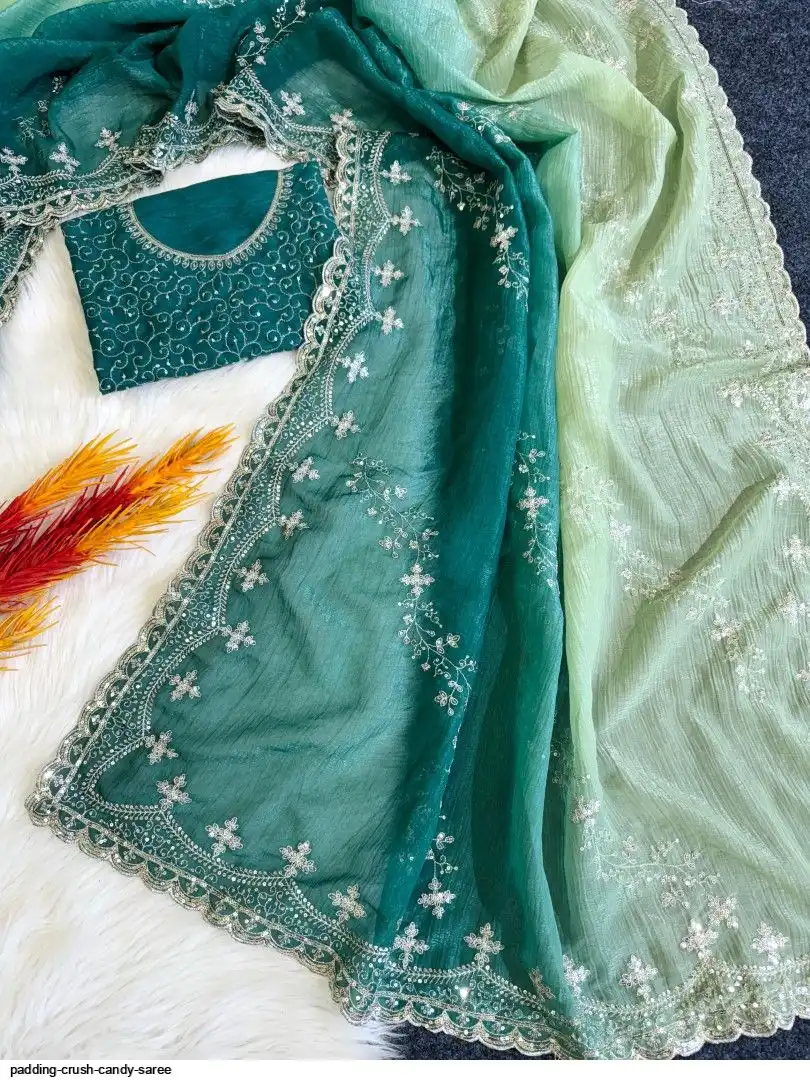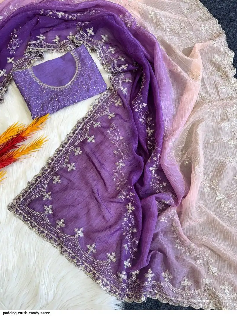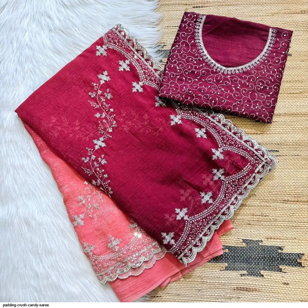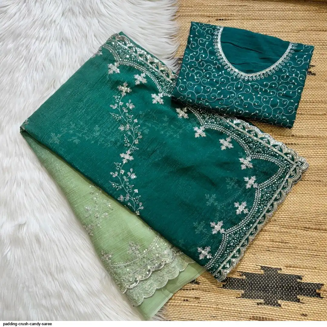 Padding crush candy saree with beautiful embroidery touch up of sequence and unstitch silk blouse