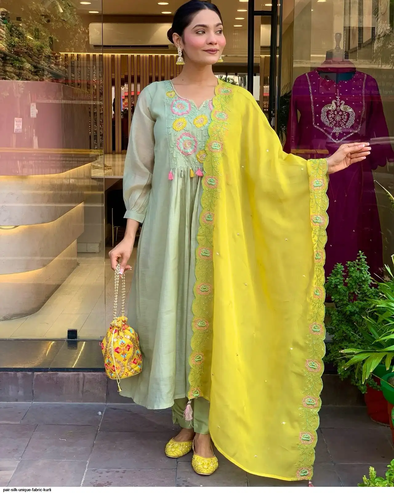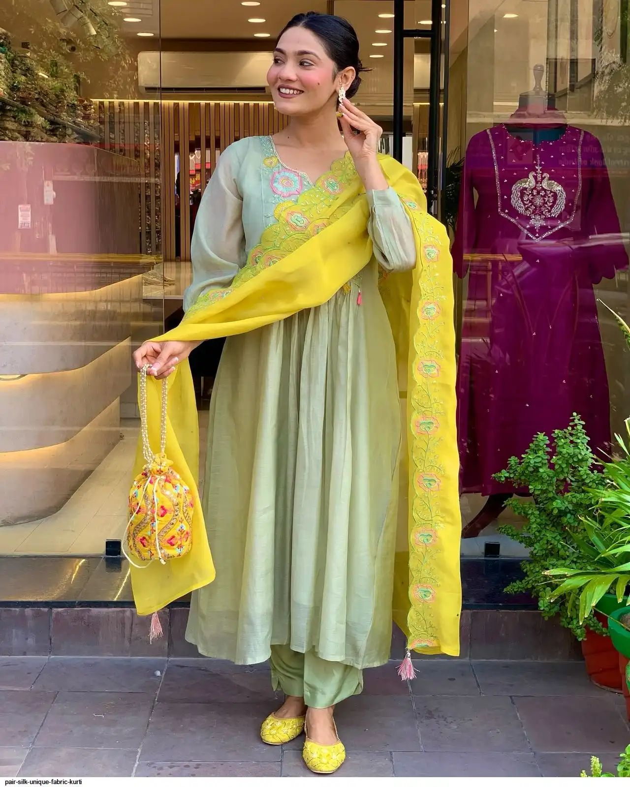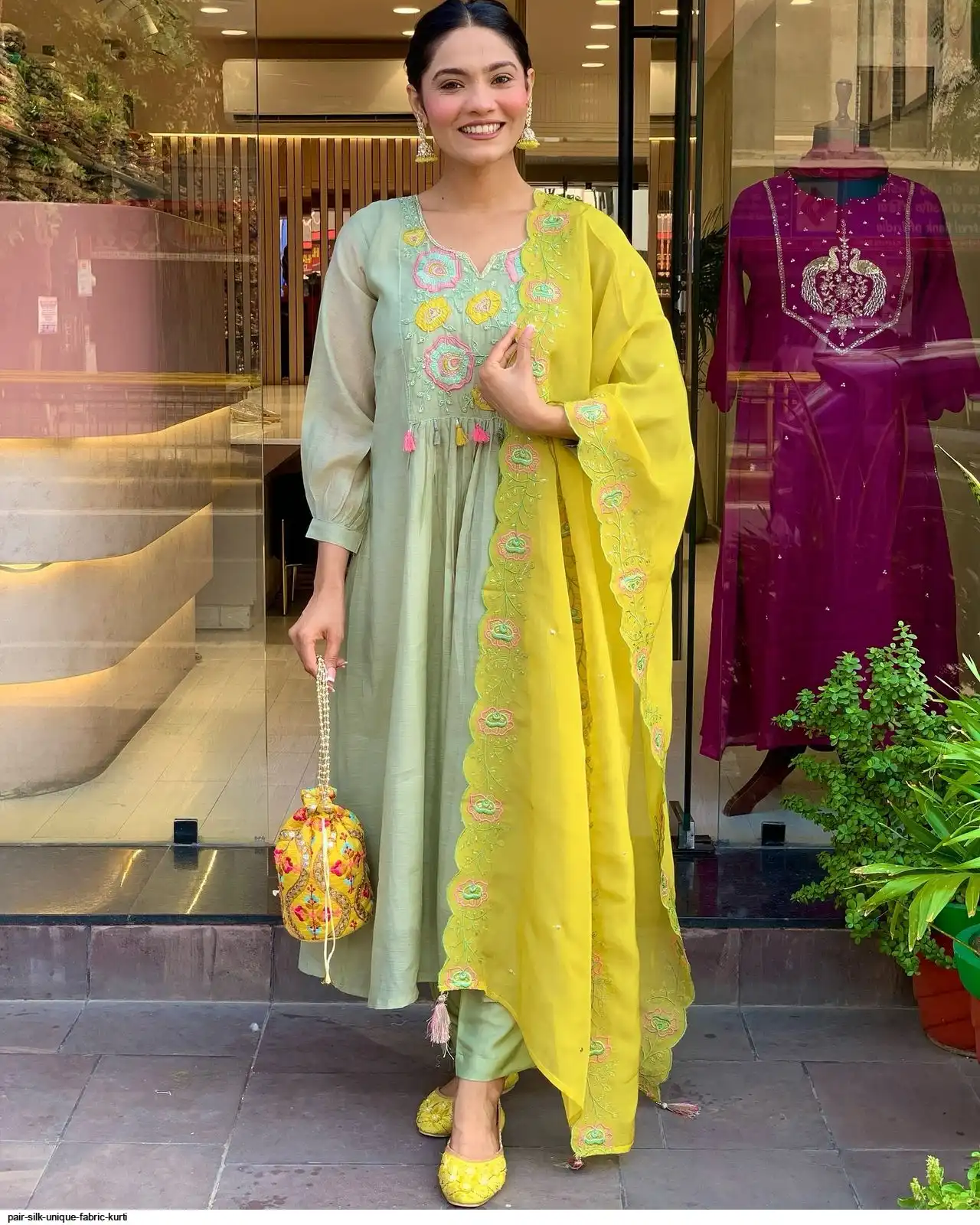 This Pair made From Parampara Silk Fabric With Attractive Goergeous Embroidered Work And Organza Duptta