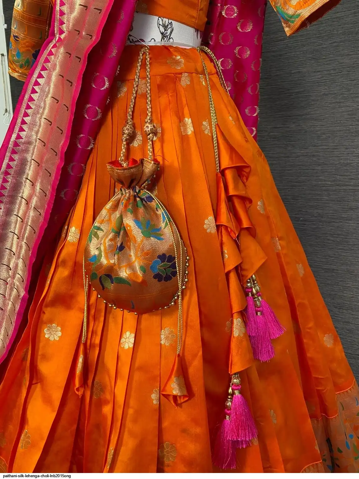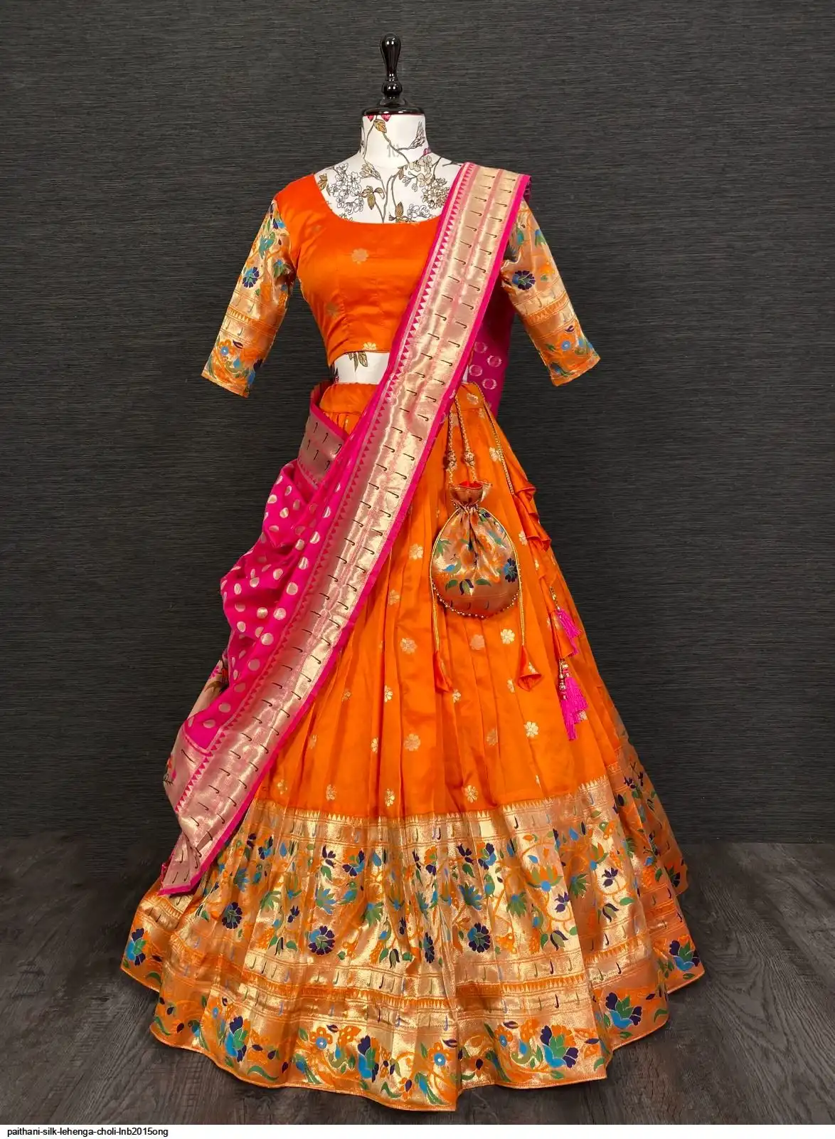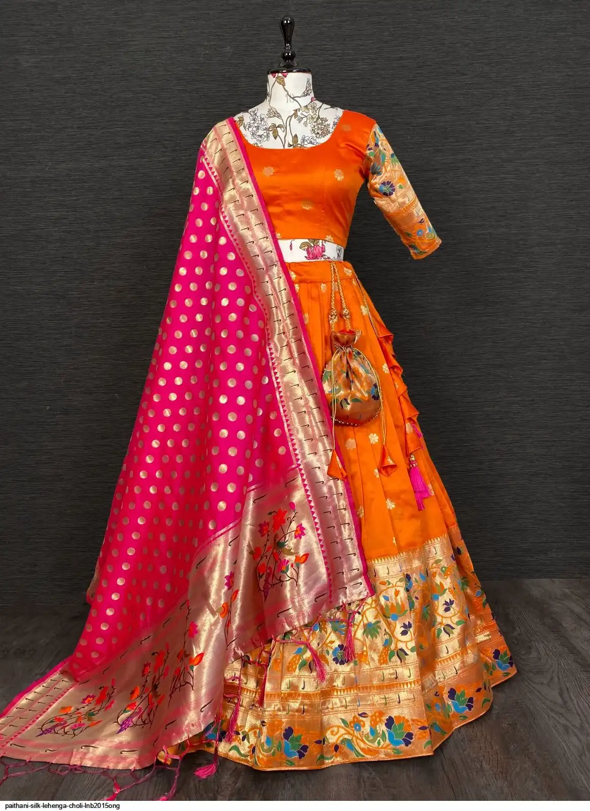 Get traditional touch to your look adorning this orange color lehenga in jacquard material beautified with all-over weaving work comes with micro cotton inner and canvas inside.