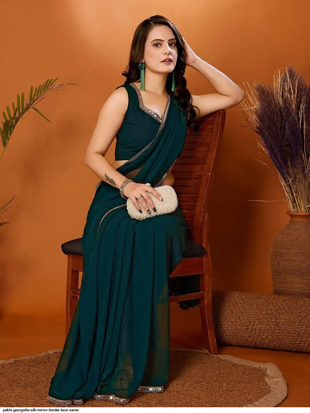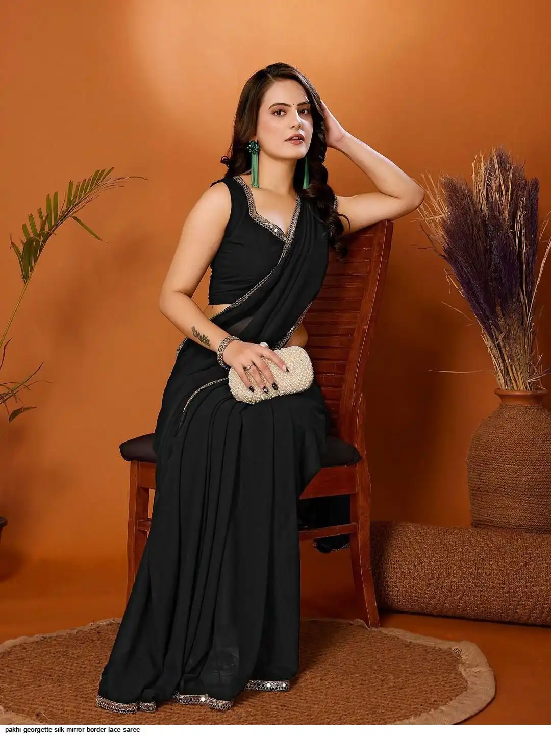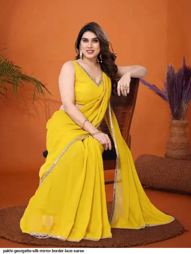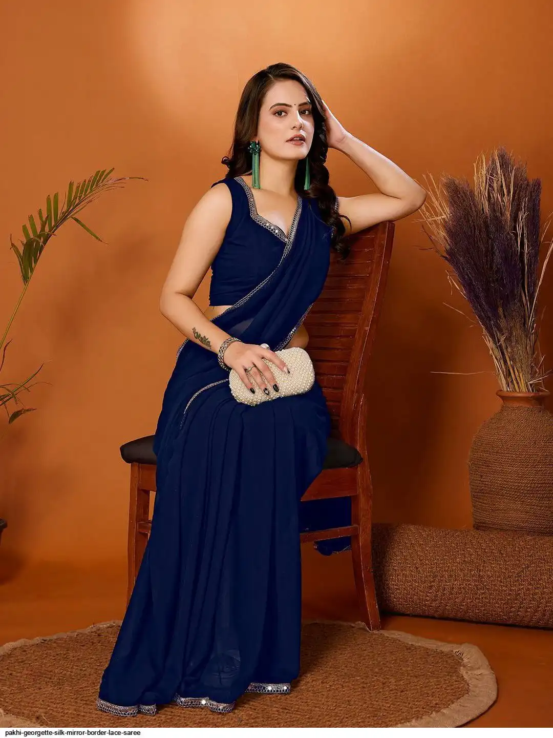 PATTERN-SOLID GEORGETTE SAREE WITH MIRROR BORDER LACE