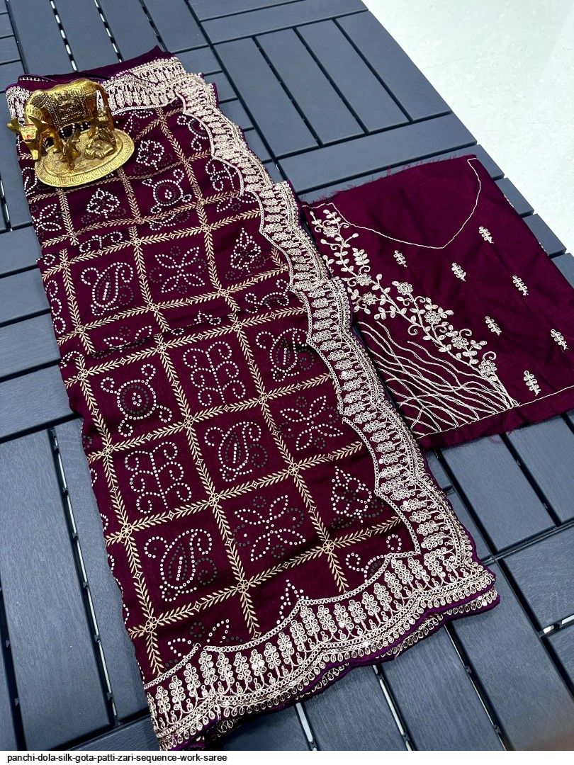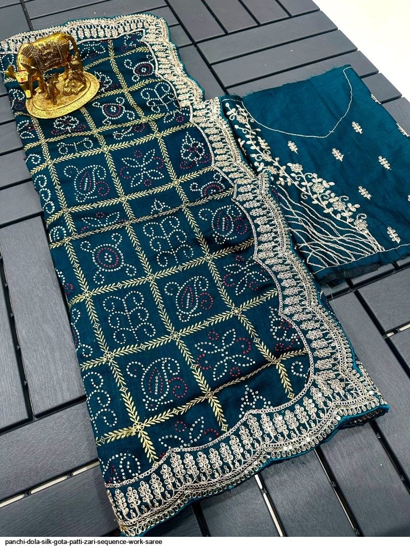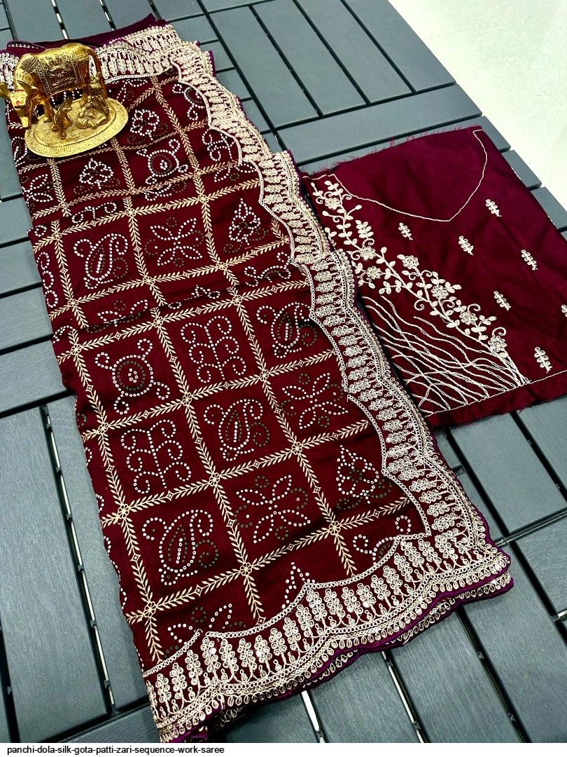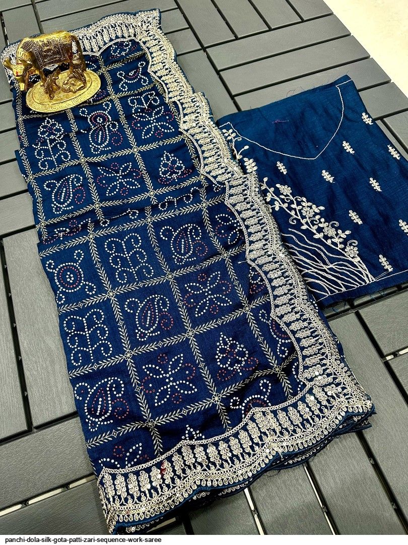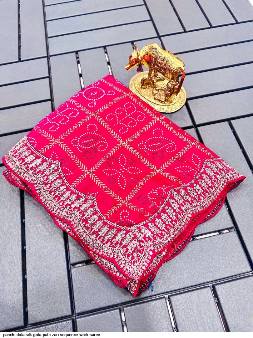 Fabric :~ Pure Dola Silk on Gota Patti Zari & Sequence Work Beautiful Design which in Border & All over Foil Print in Saree concept also giving unique