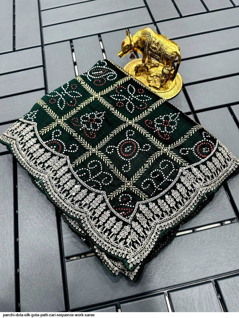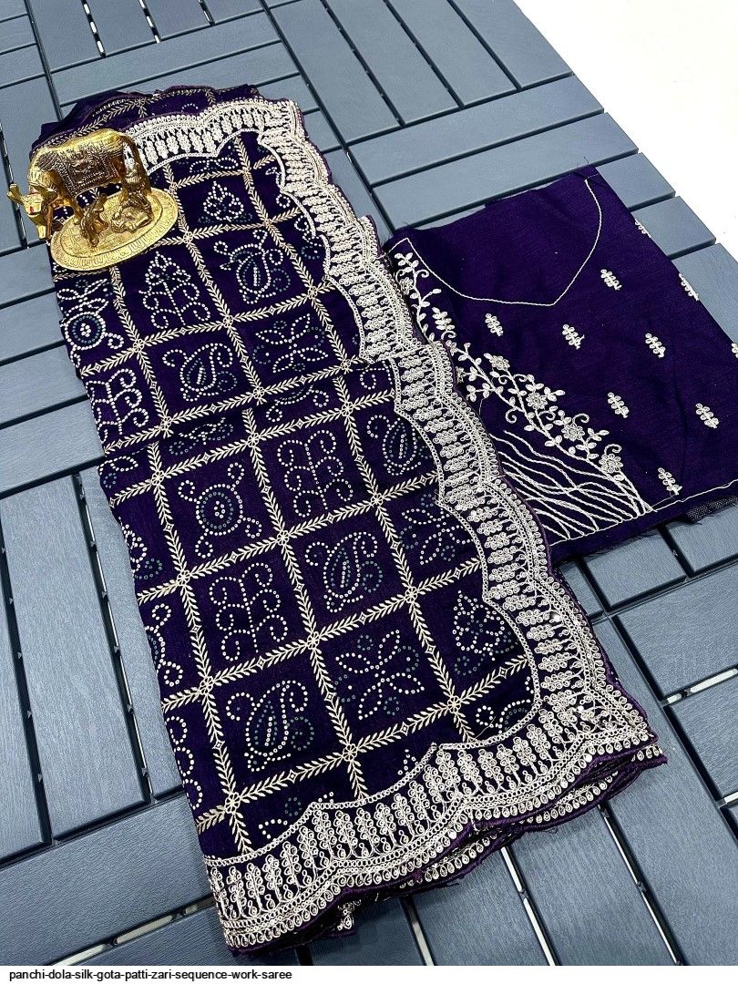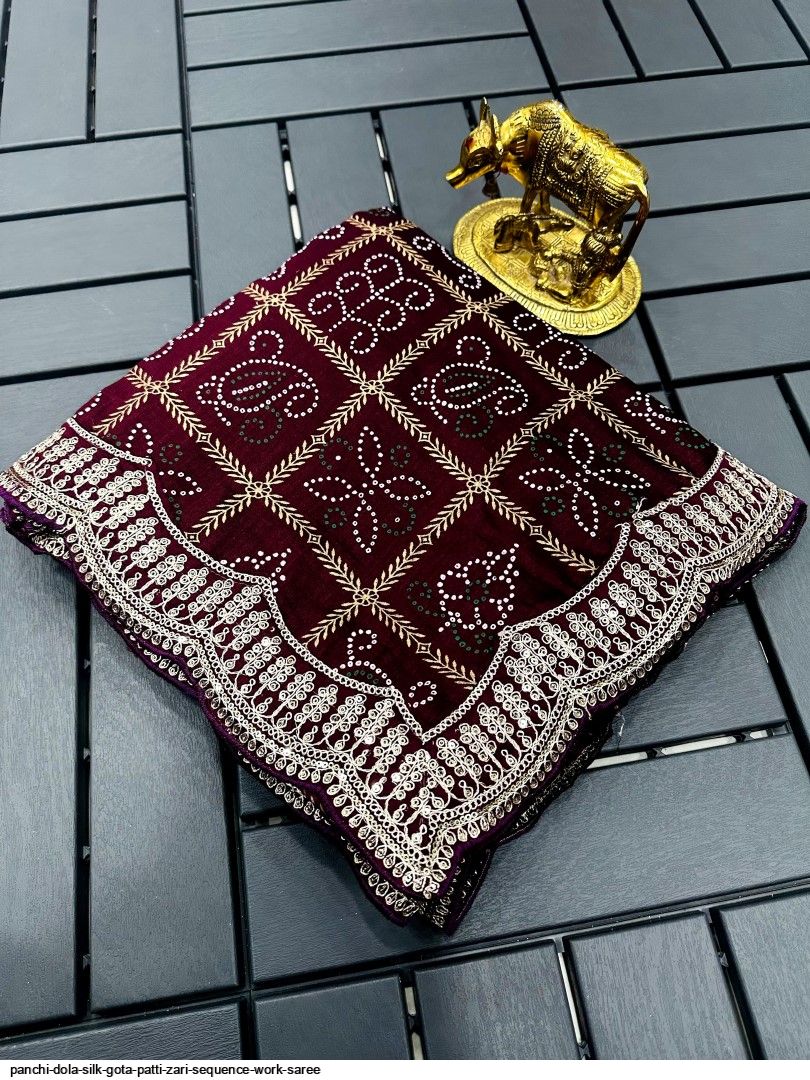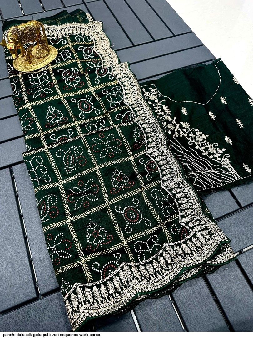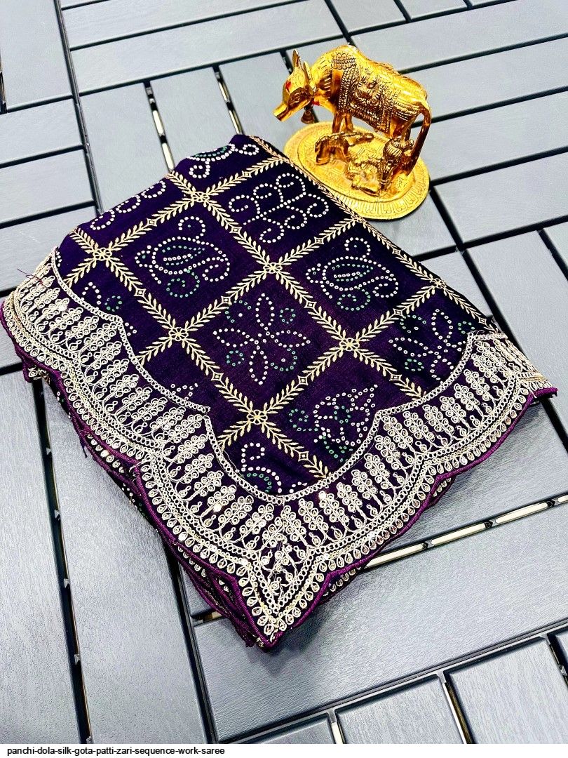 Fabric :~ Pure Dola Silk on Gota Patti Zari & Sequence Work Beautiful Design which in Border & All over Foil Print in Saree concept also giving unique