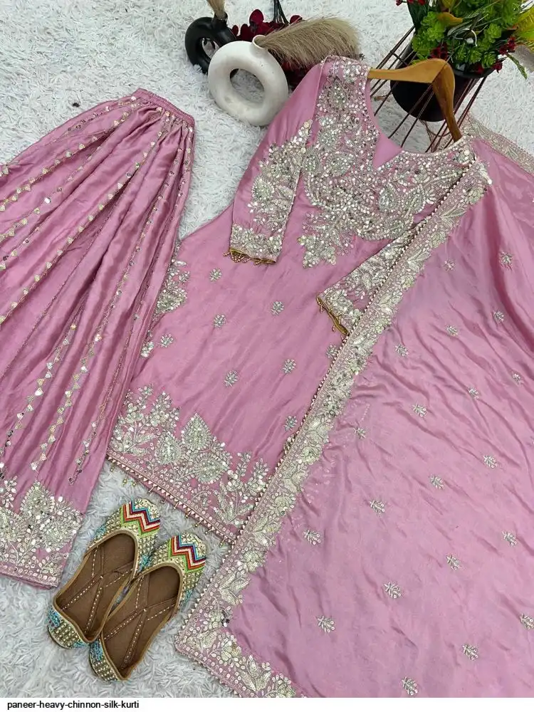 *Top Fabric* : *Heavy Chinon Silk With Heavy Embroidery Sequence Work with Rivet Moti Work*with Full Sleeve*