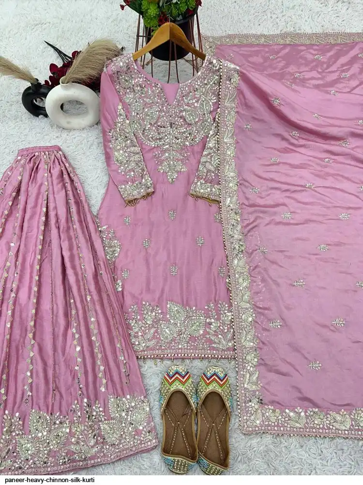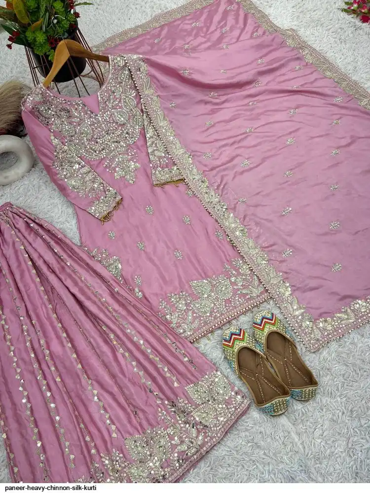 *Dupatta Fabric* :Heavy Chinon Silk With *Heavy Embroidery Sequence Work and Lace Border*