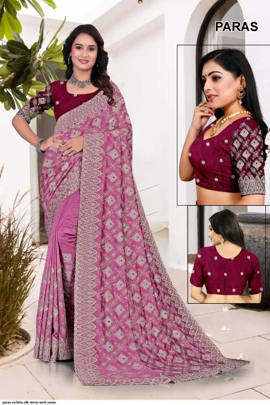 Work :- Full Heavy Zari Embroidery With Fully Heavy Zarkan Stone Work in all over saree