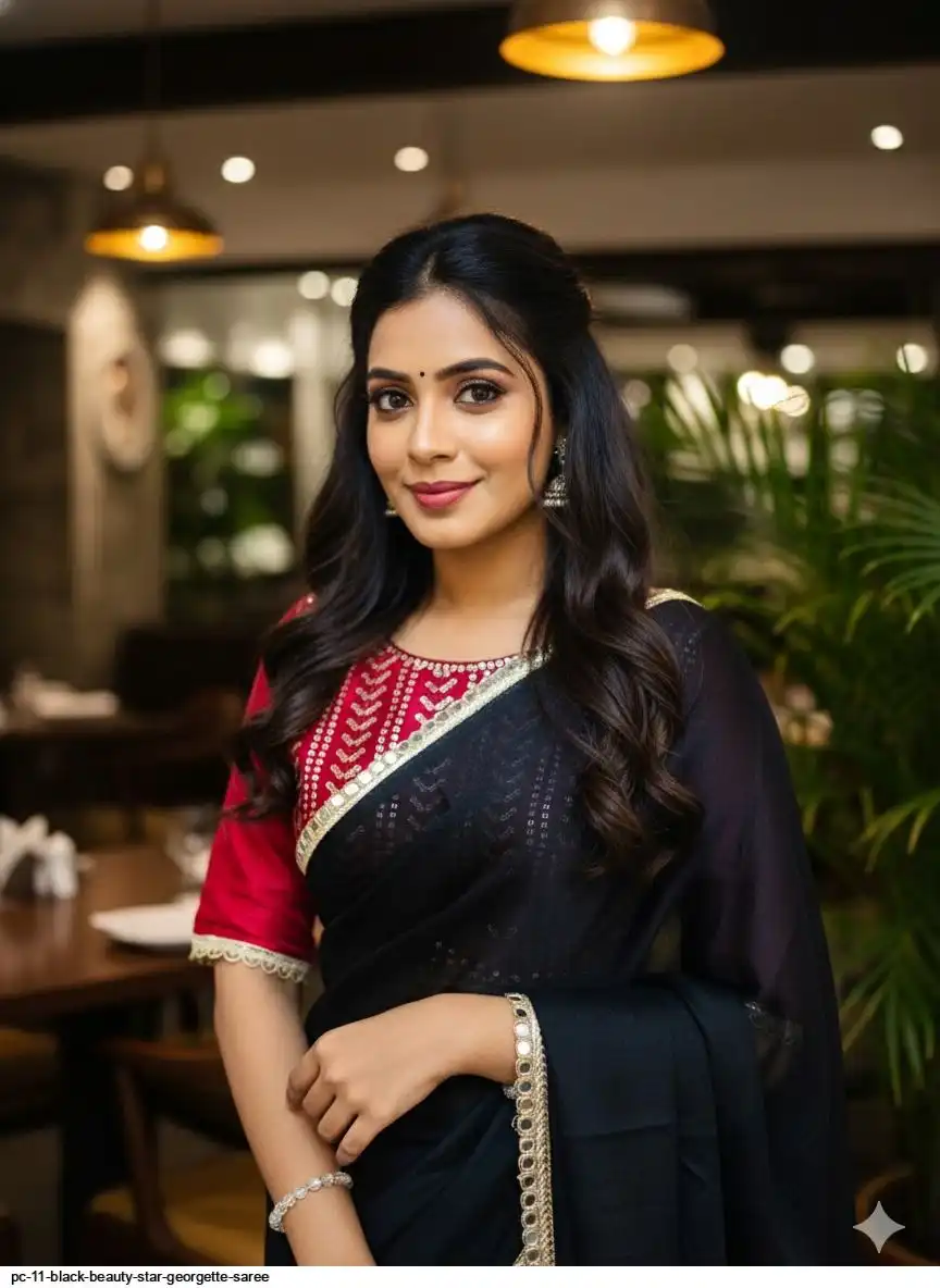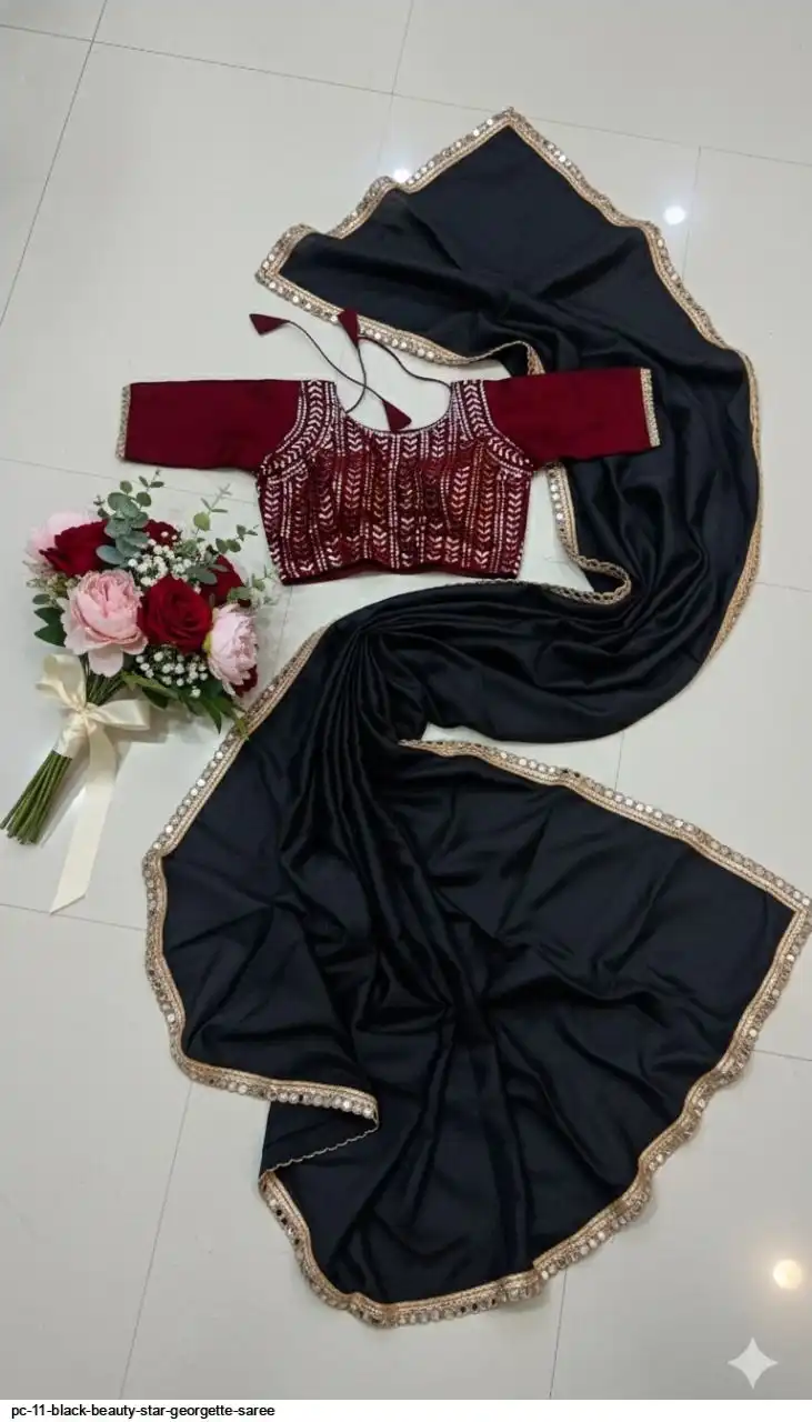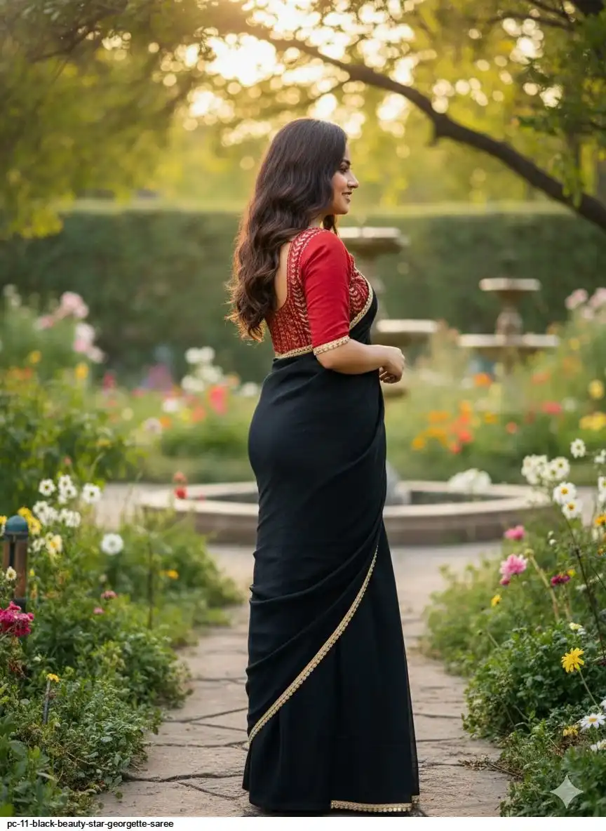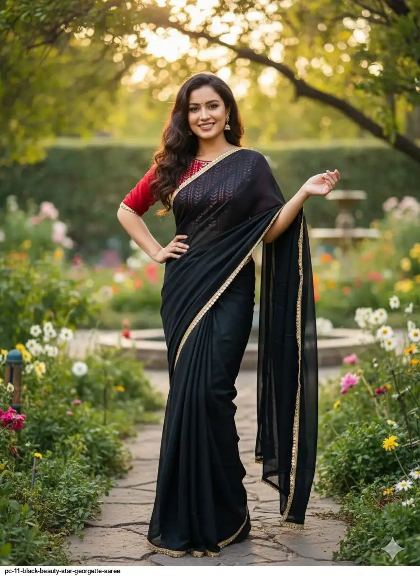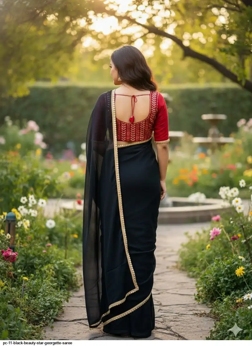 Black ELEGANT STAR GEORGETTE SAREE WITH STITCHED BLOUSE – TIMELESS BEAUTY