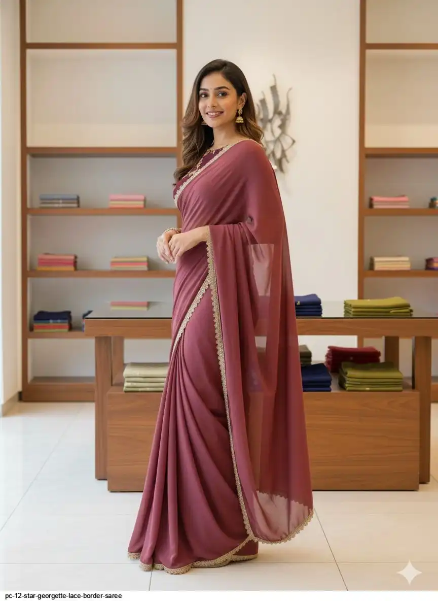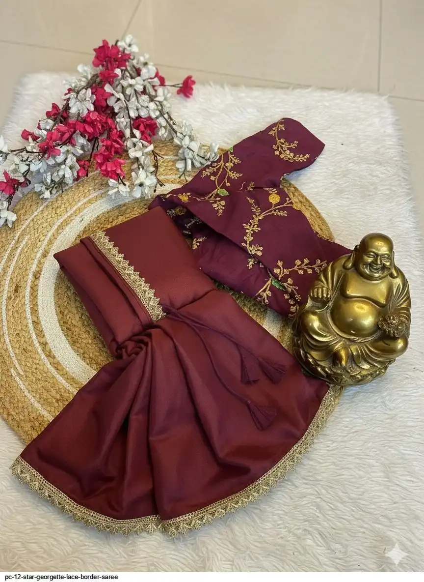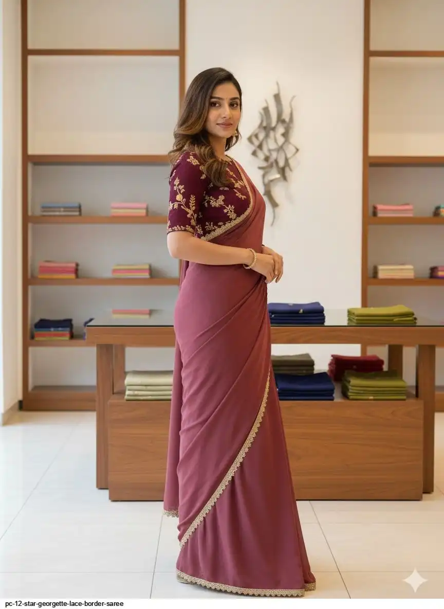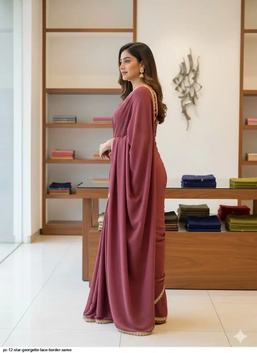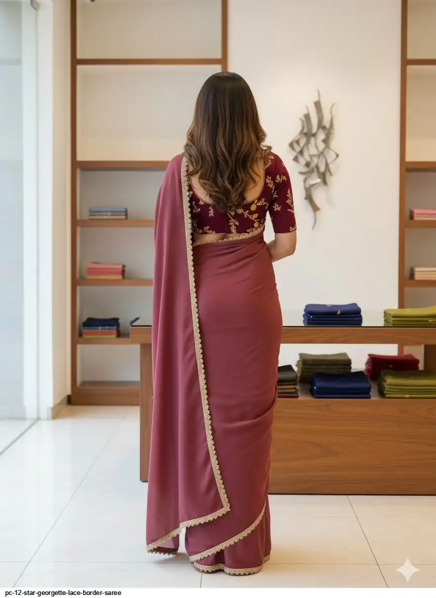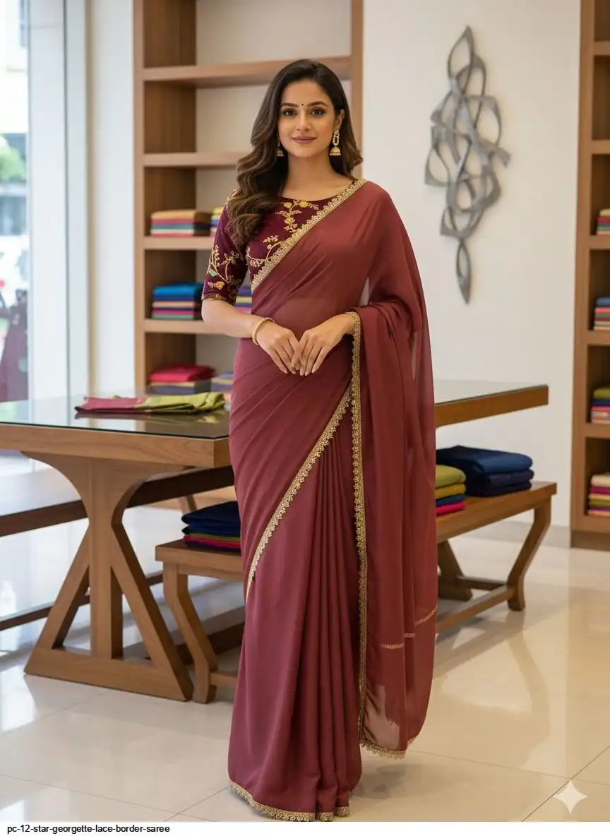 ELEGANT STAR GEORGETTE SAREE WITH STITCHED BLOUSE – TIMELESS BEAUTY