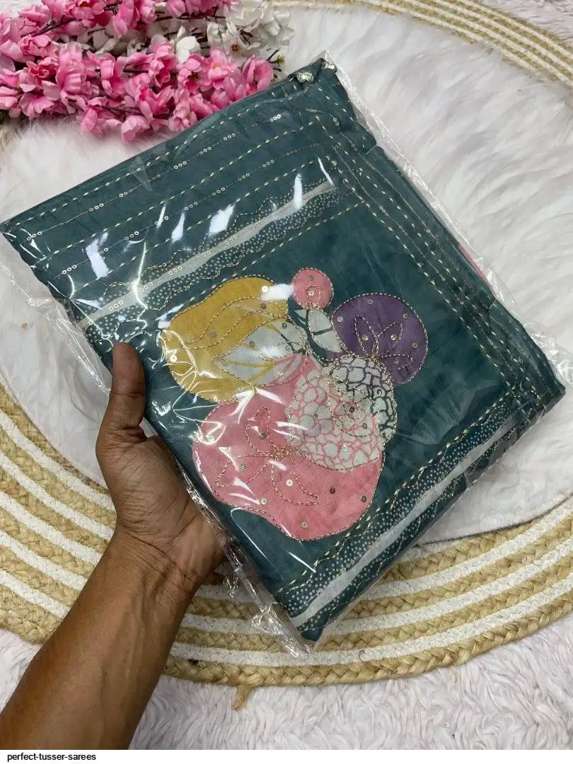 Fabric : Perfect Tusser Sarees With Designer khtha work With Contrast blouse