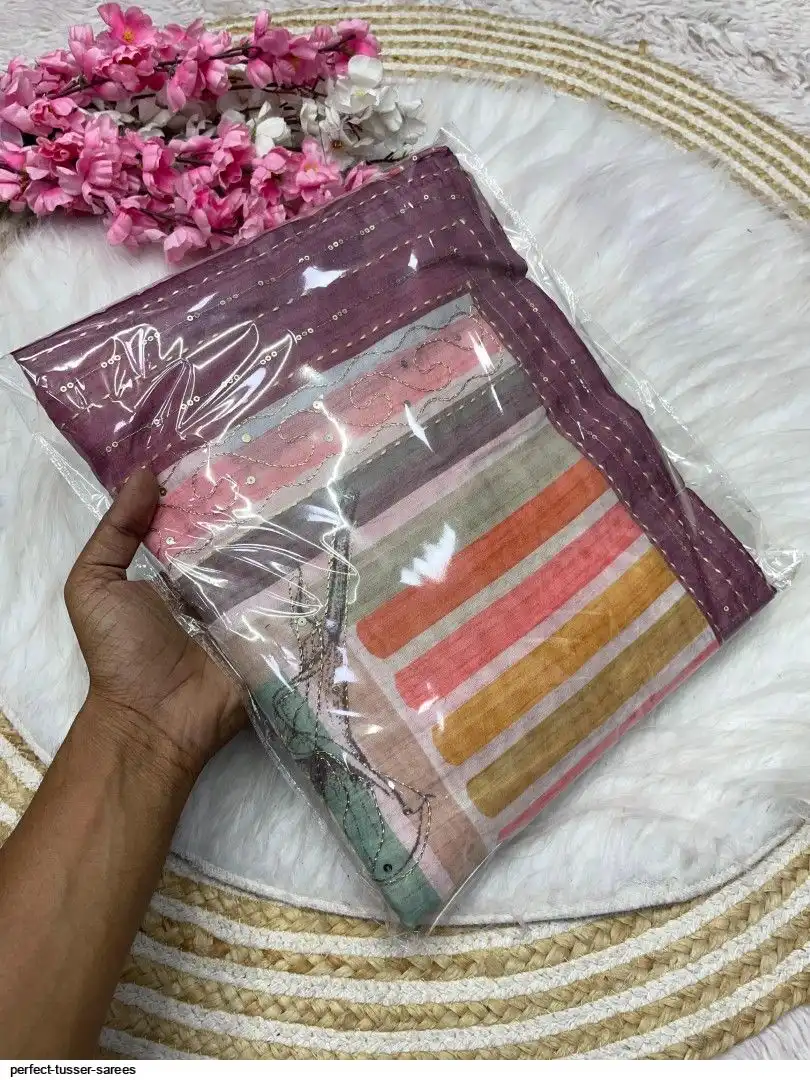 Fabric : Perfect Tusser Sarees With Designer khtha work With Contrast blouse