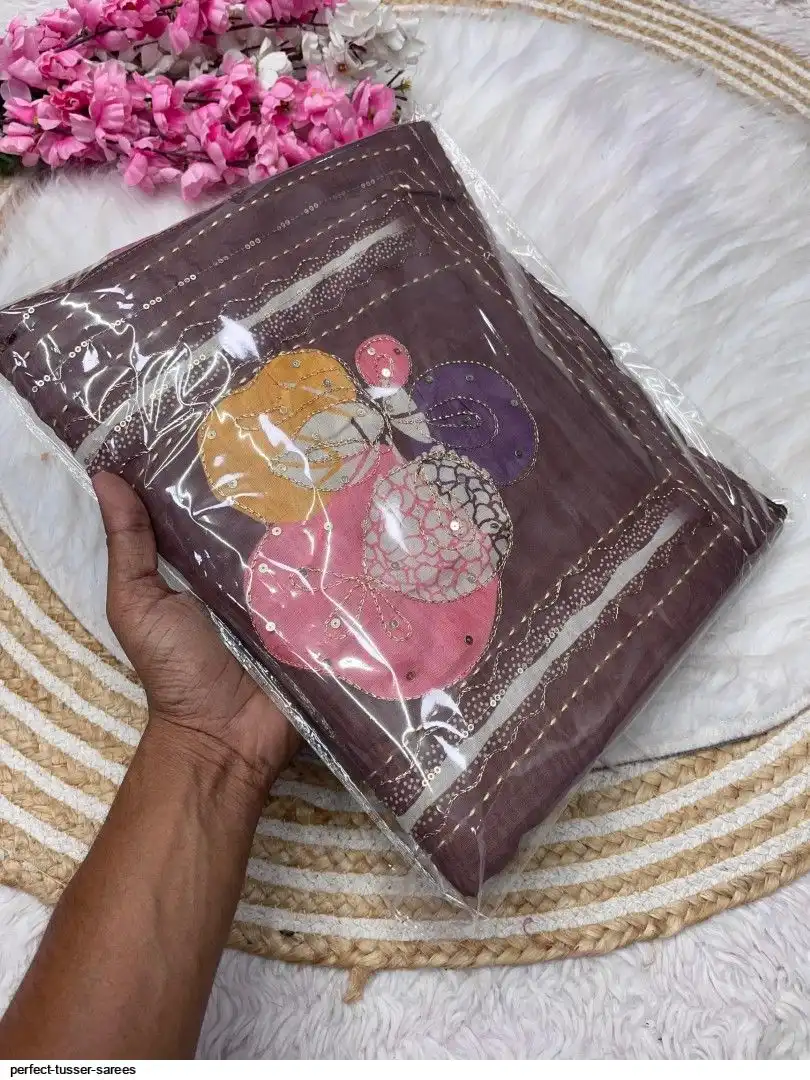 Fabric : Perfect Tusser Sarees With Designer khtha work With Contrast blouse