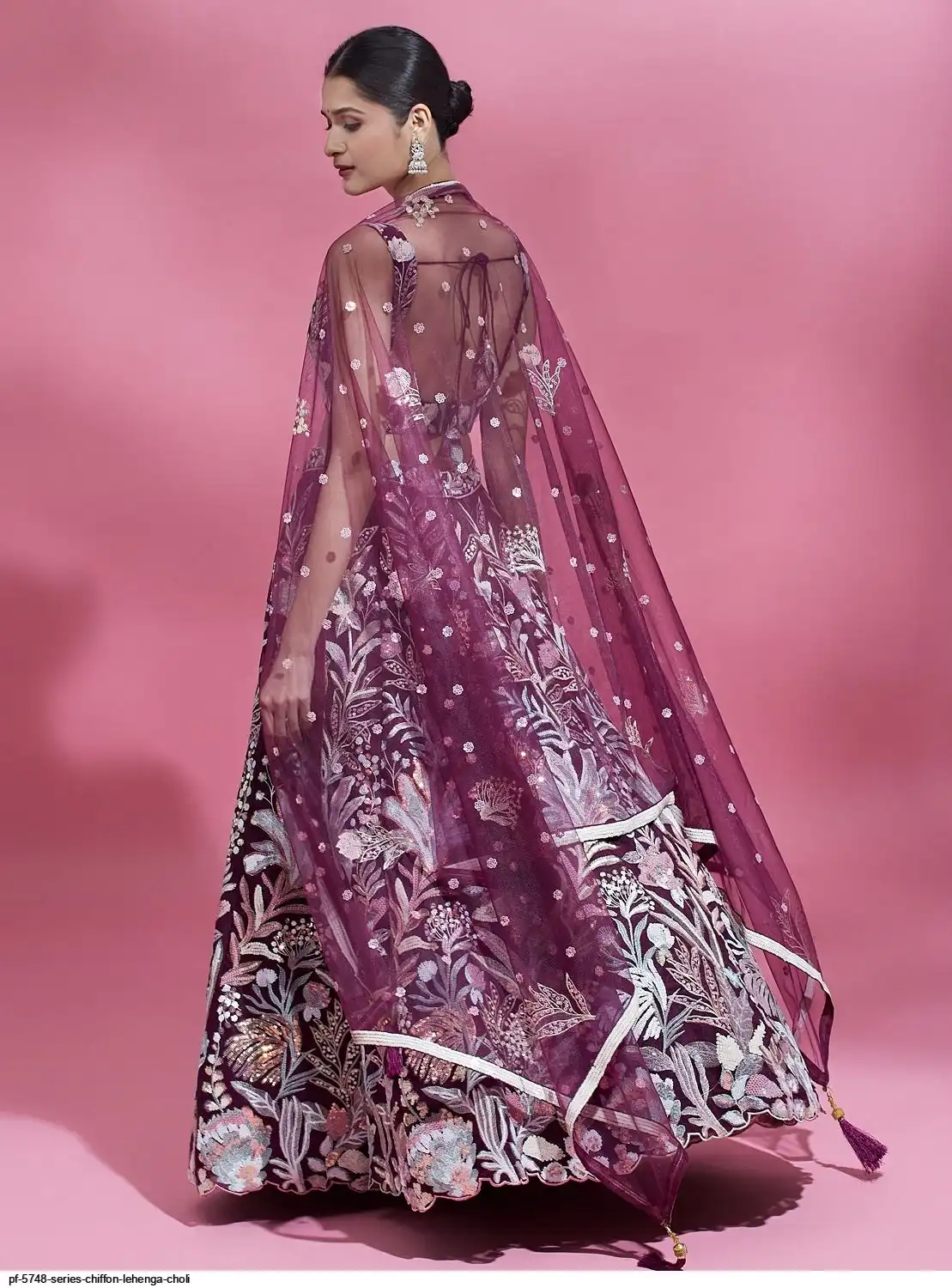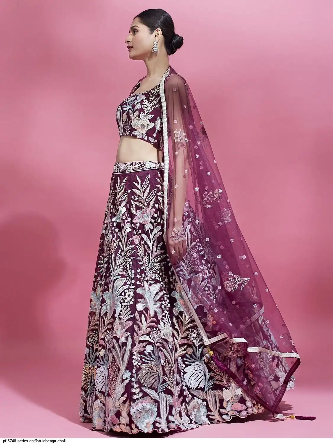 * Dupatta:- Burgundy colour Net Dupatta with Sequinse Embroidery Work Border with Sequinse work ethnic motifs.
