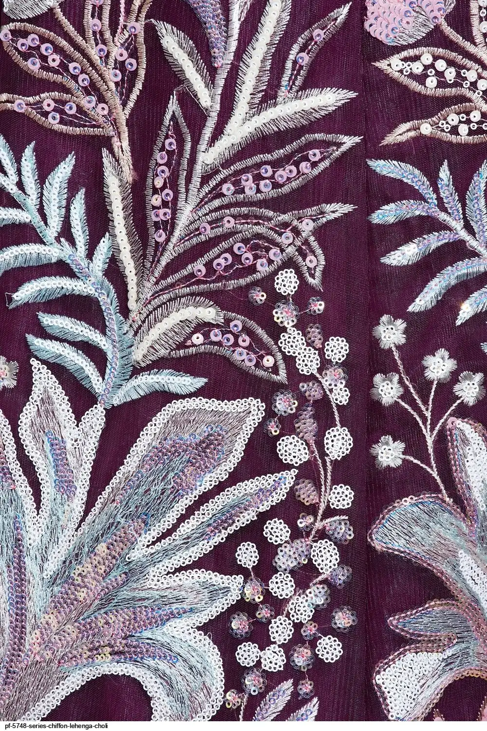 * Blouse:-Burgundy Net Unstitched With Heavy Sequinse and Thread Embroidery Work.