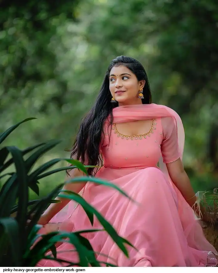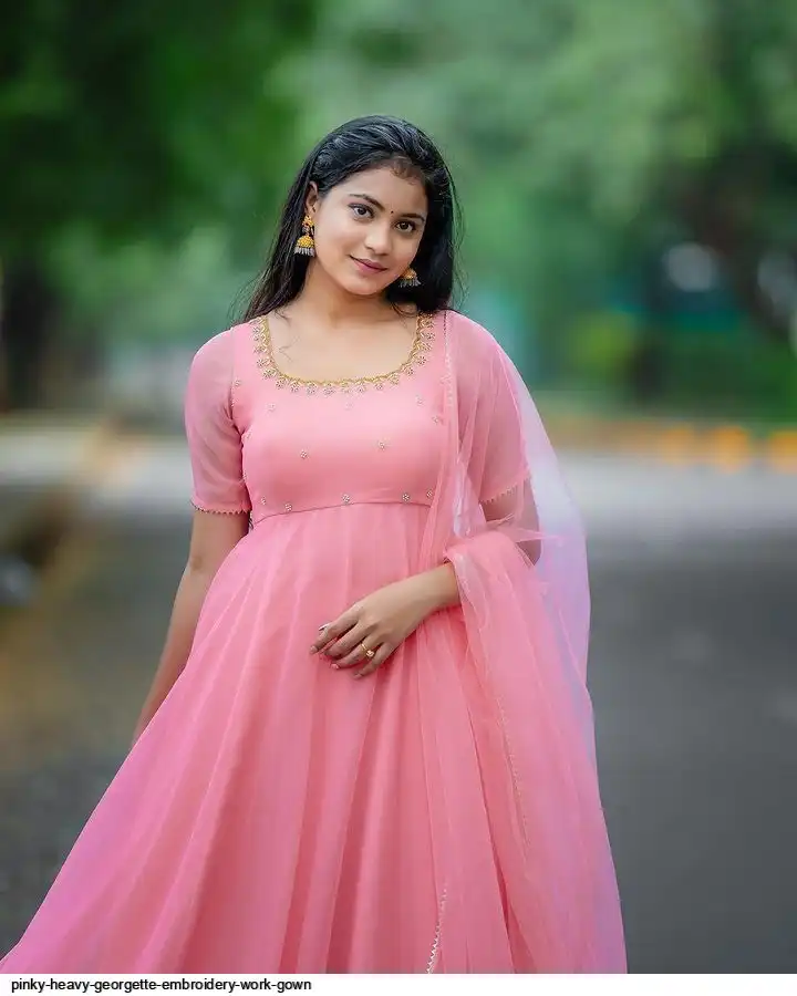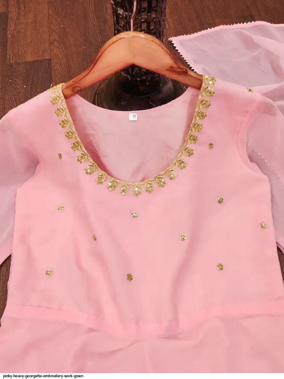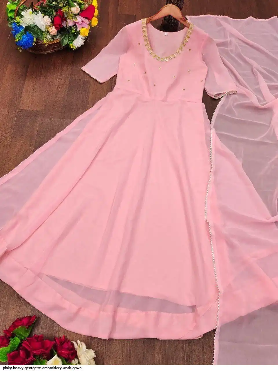 NF PRESENTING NEW HEAVY FOX GEORGETTE GOWNS WITH EMBROIDERY SIQUNCE ZARI WORK WITH DUPTTA