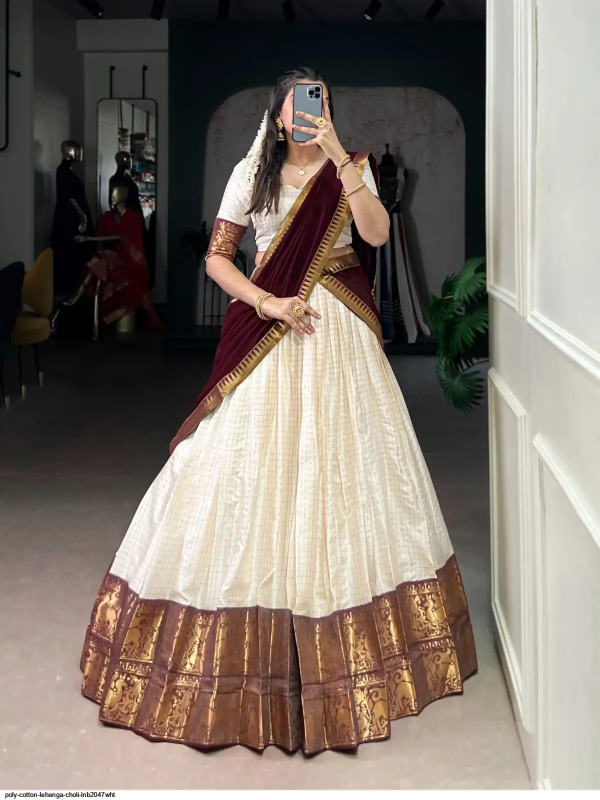 Lehenga work : Chex With Zari Weaving Work