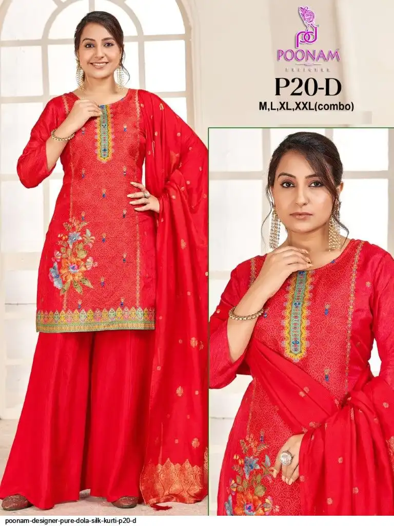 POONAM DESIGNER PURE DOLA SILK KURTI P20 D
