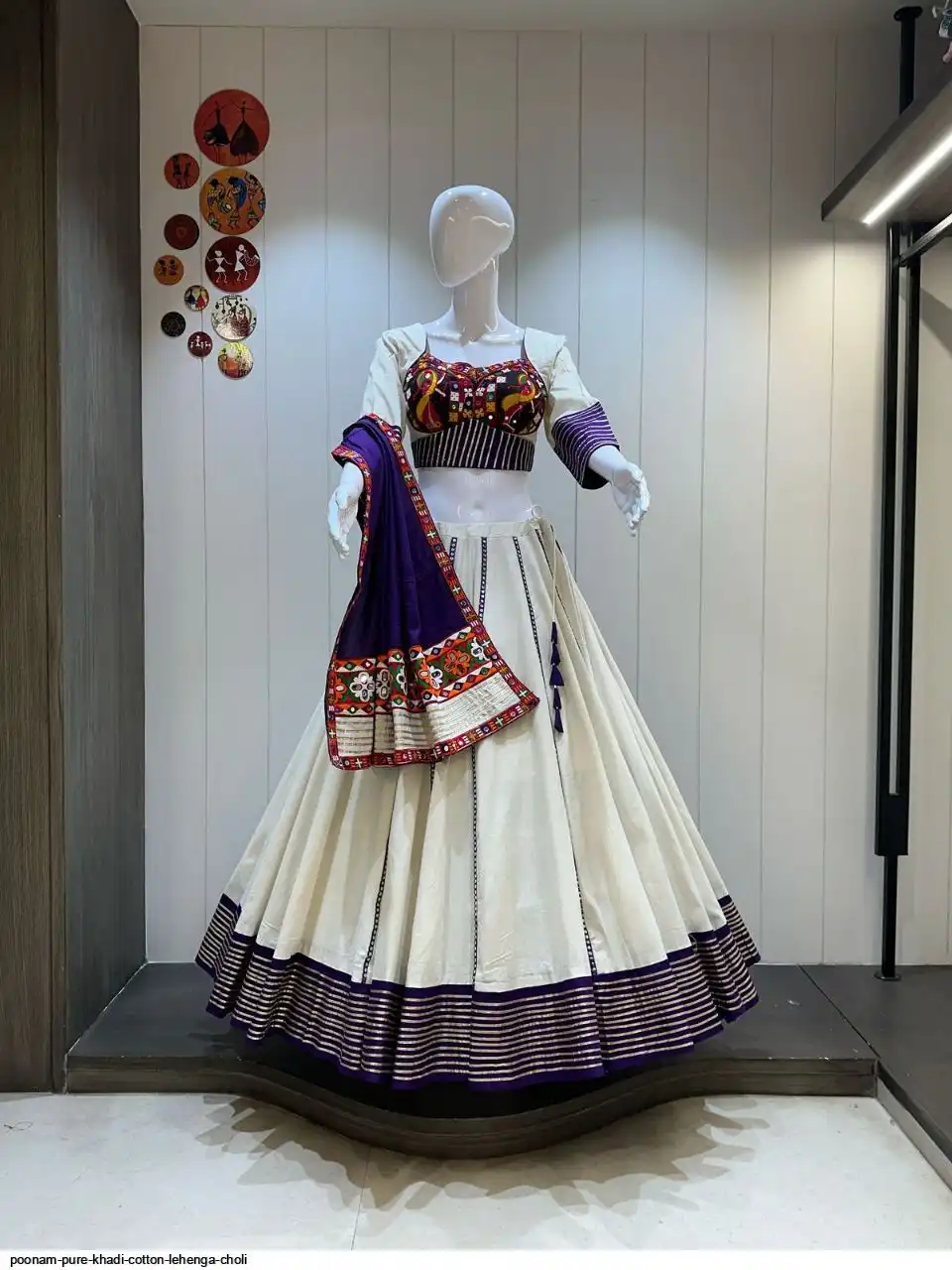 Pure khadi cotton chaniya choli with heavy gamthi blouse