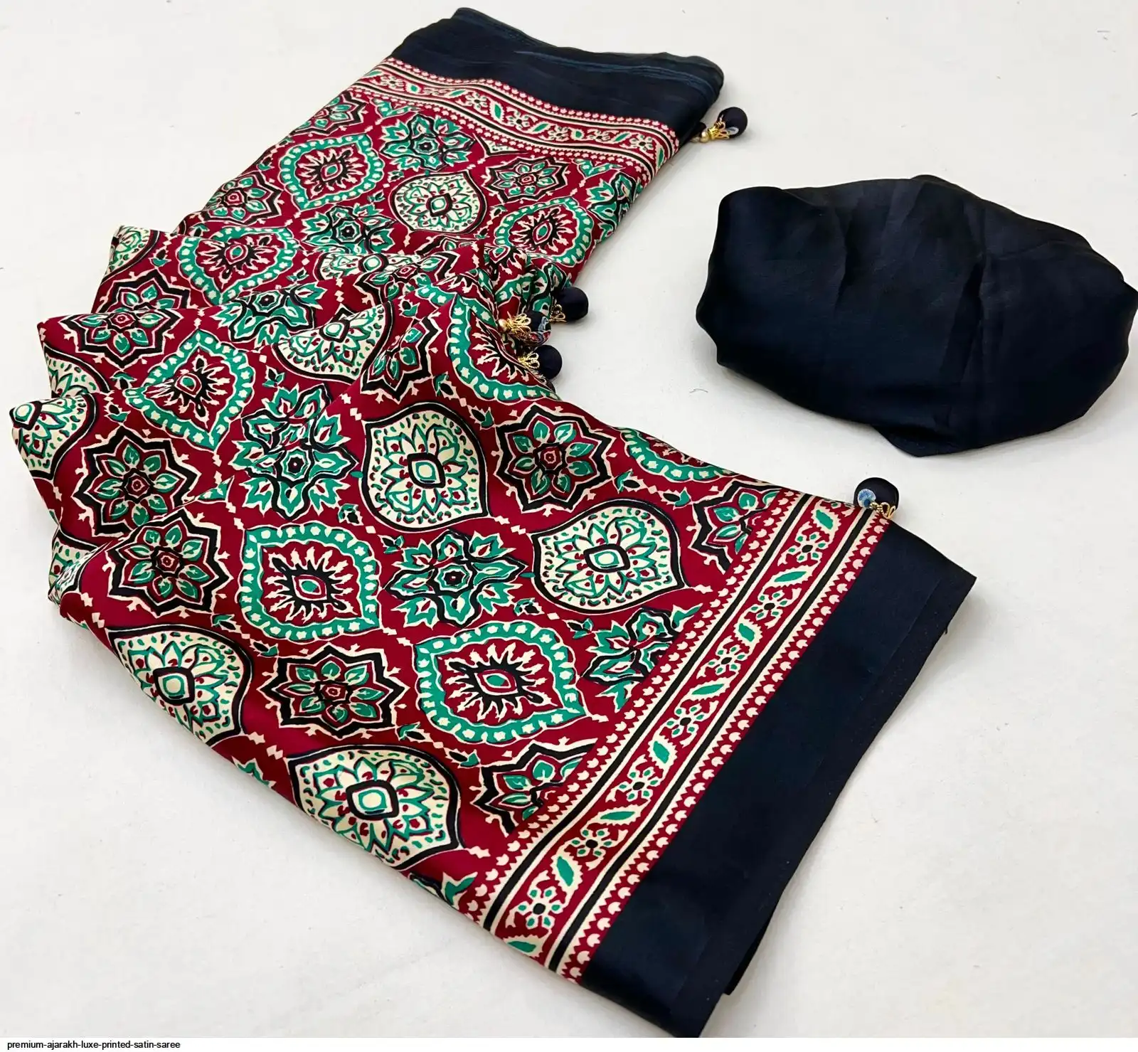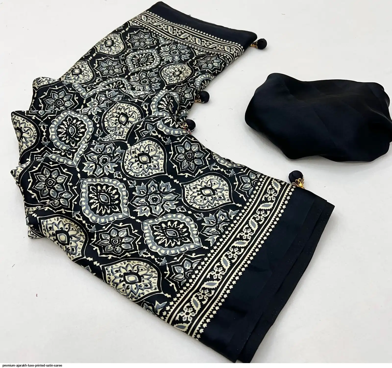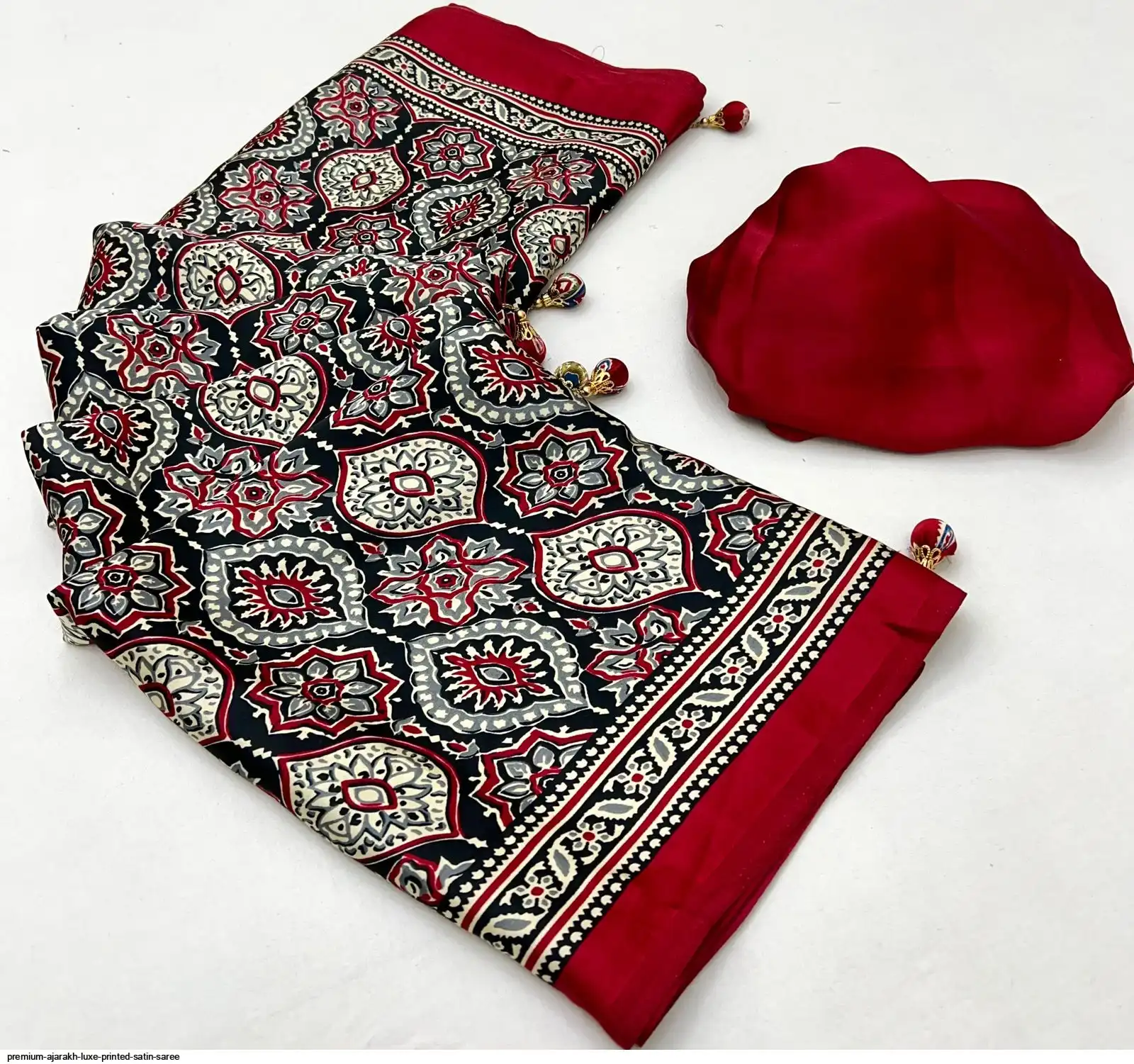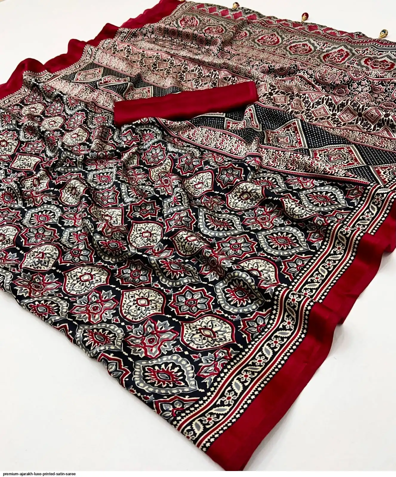 Fabric - Printed Ajarakh Satin Crepe Saree