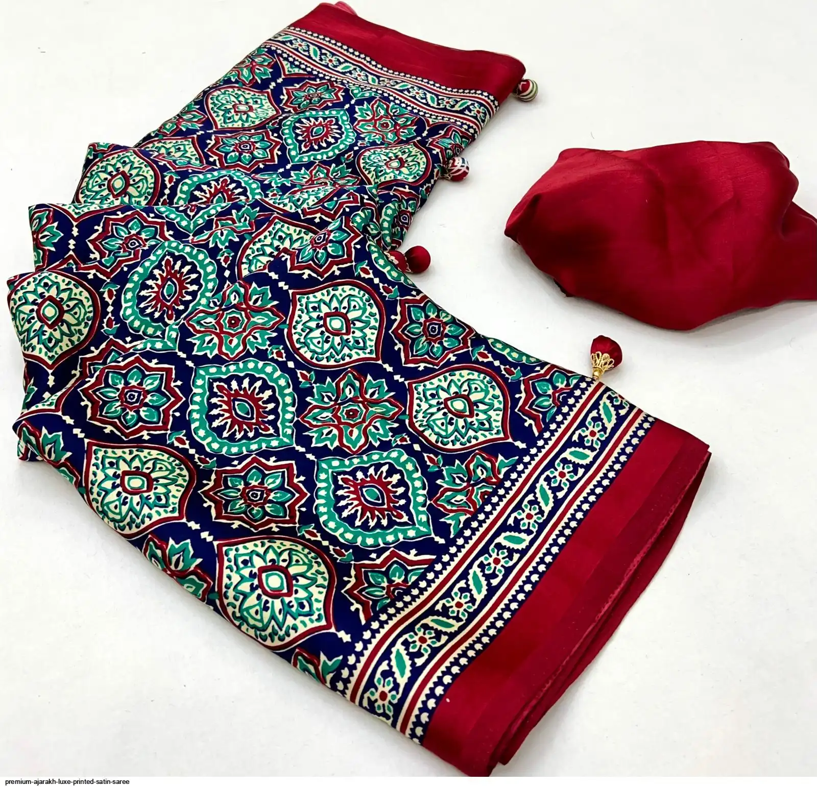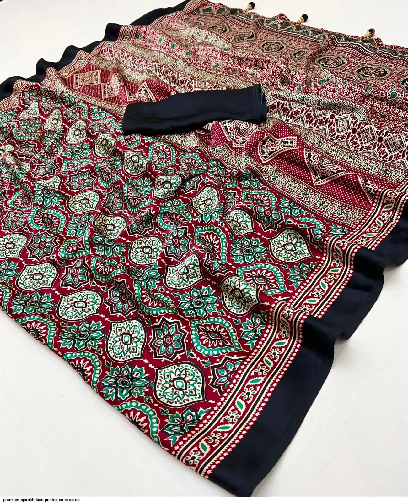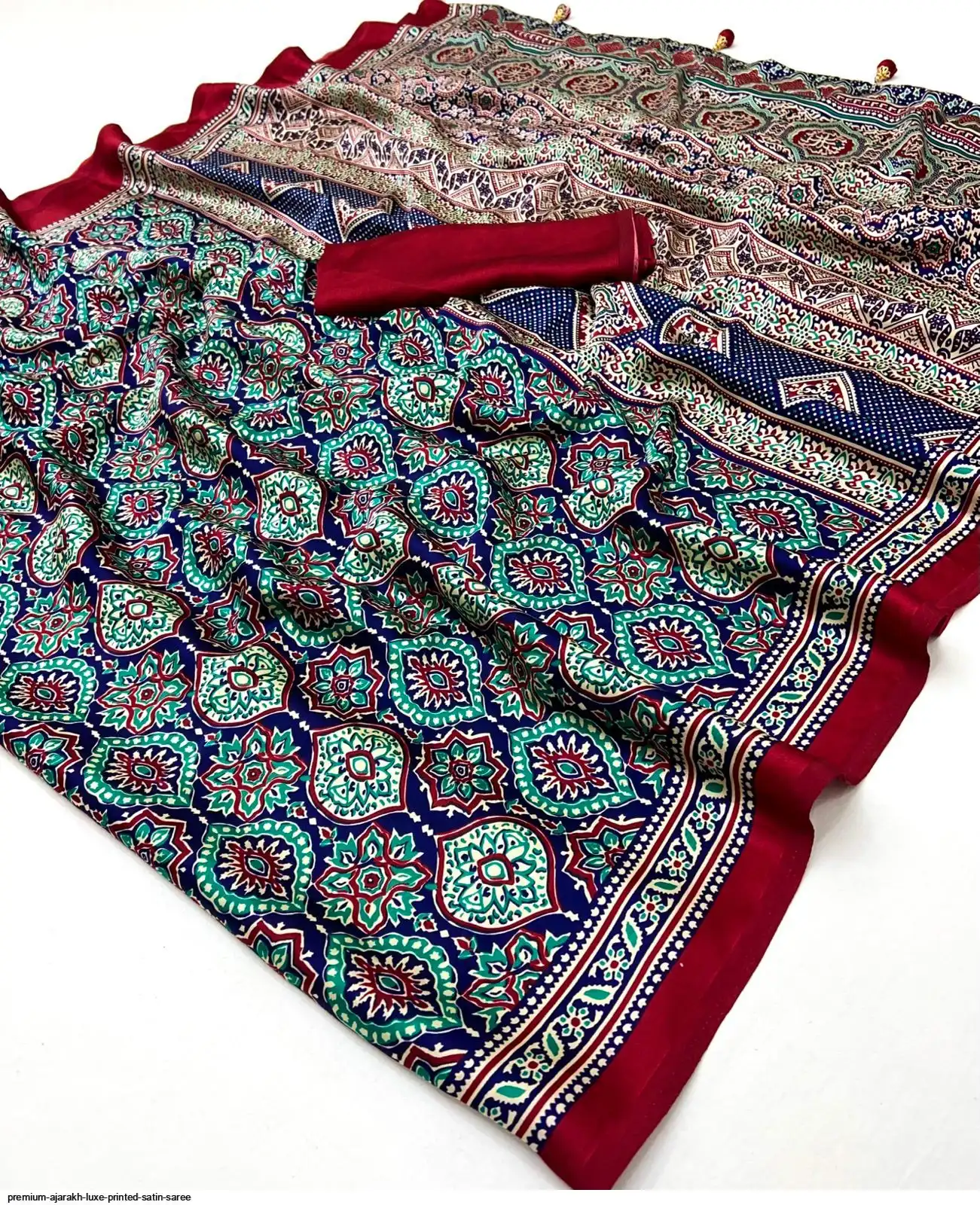 Fabric - Printed Ajarakh Satin Crepe Saree