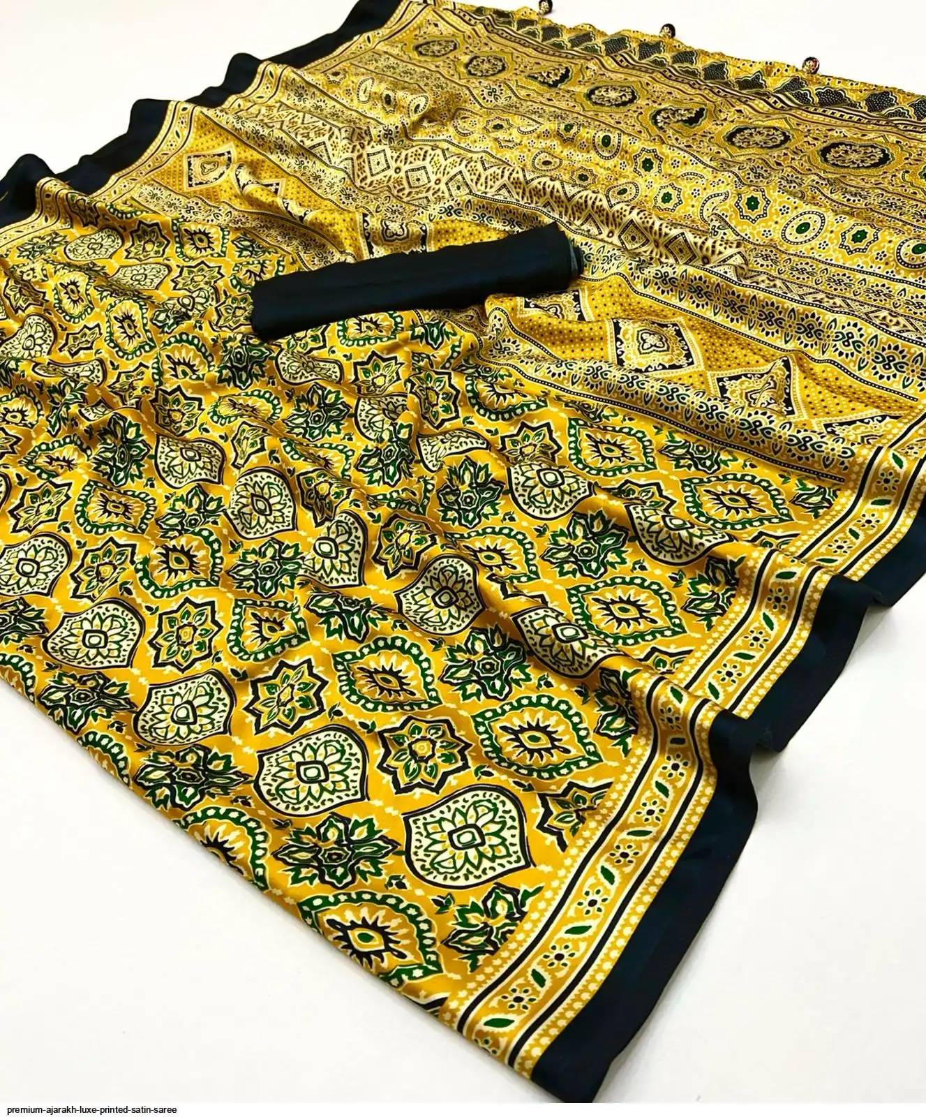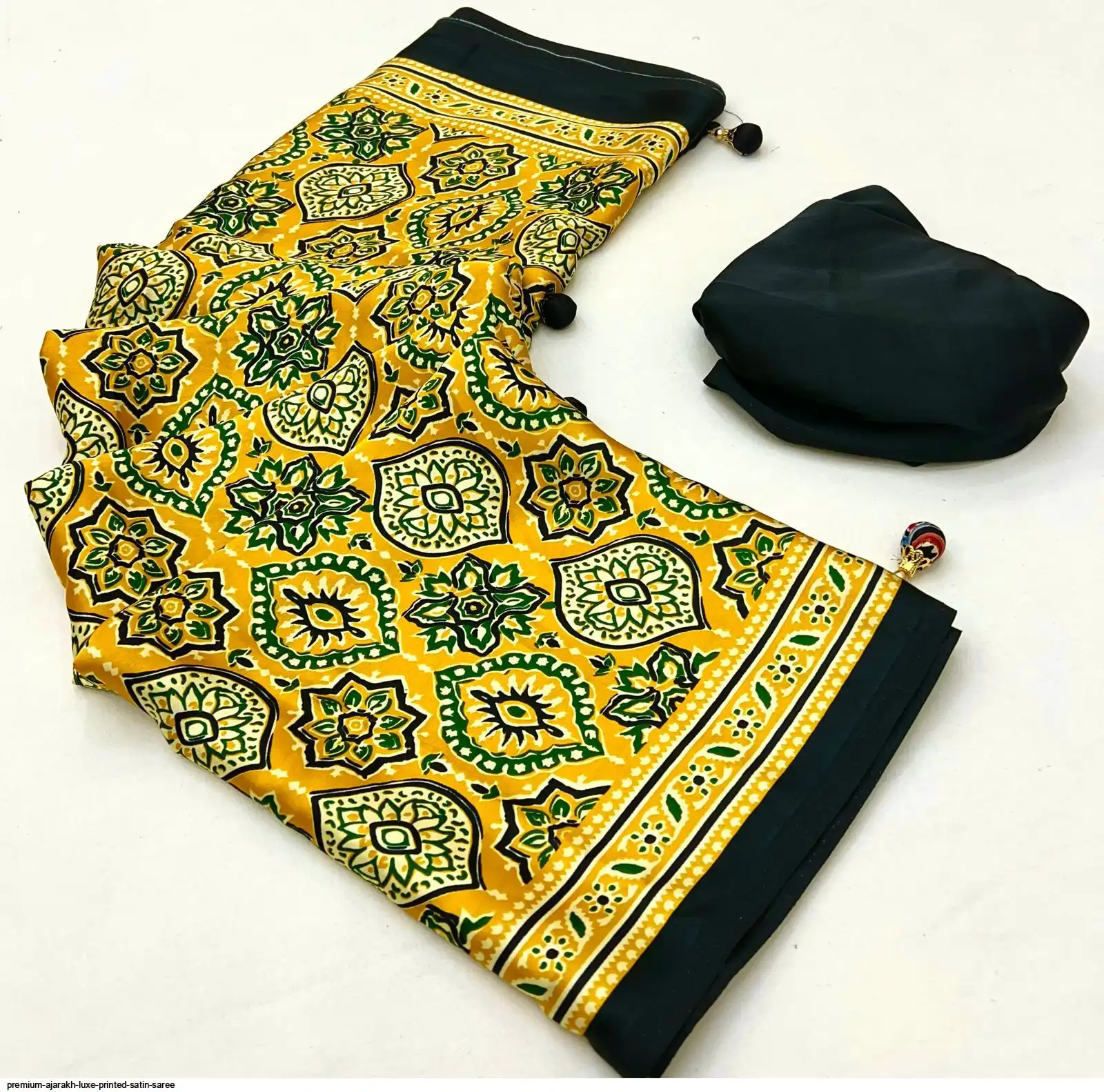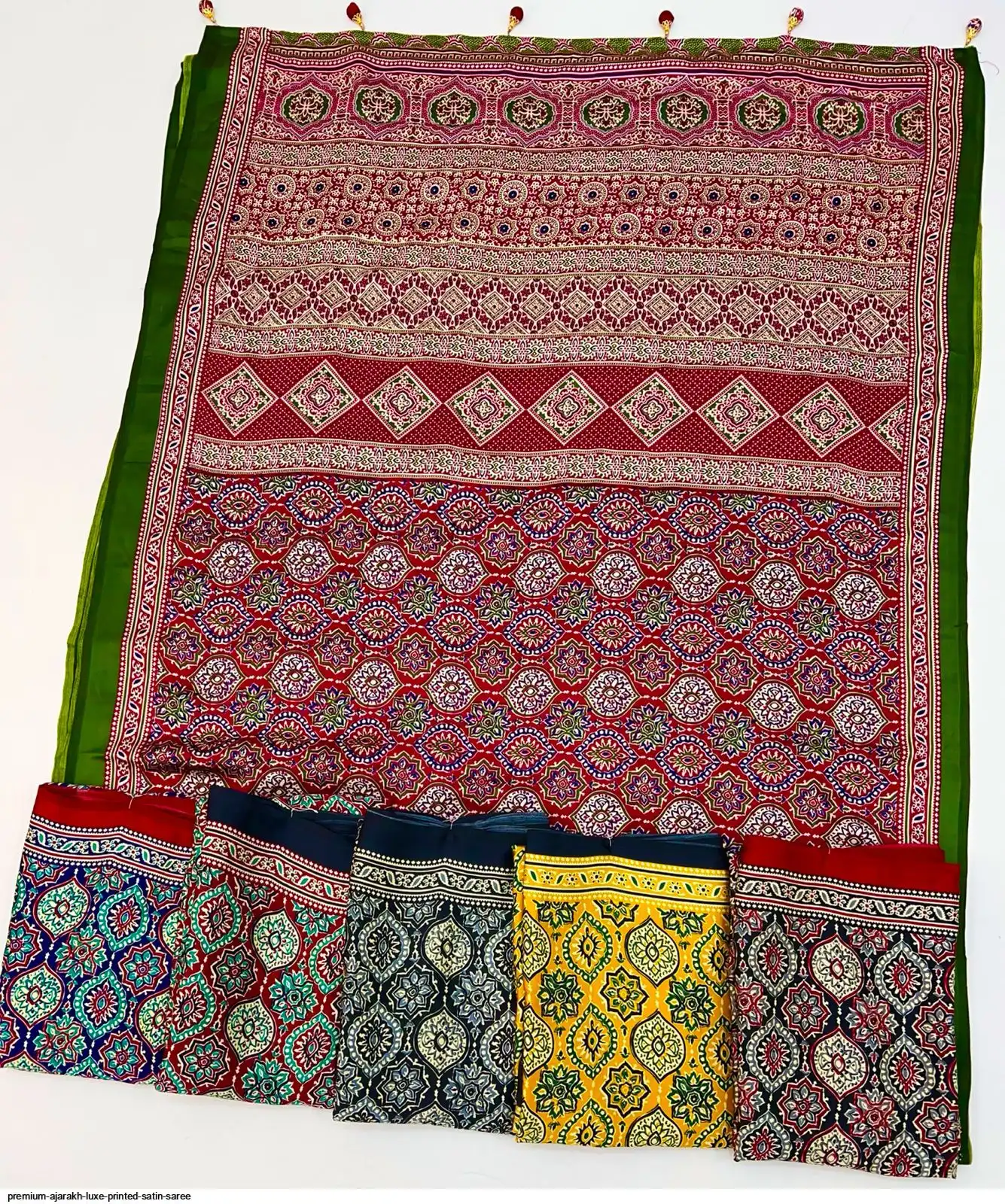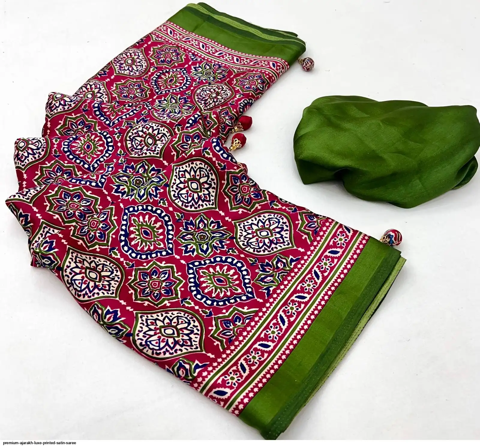 Fabric - Printed Ajarakh Satin Crepe Saree
