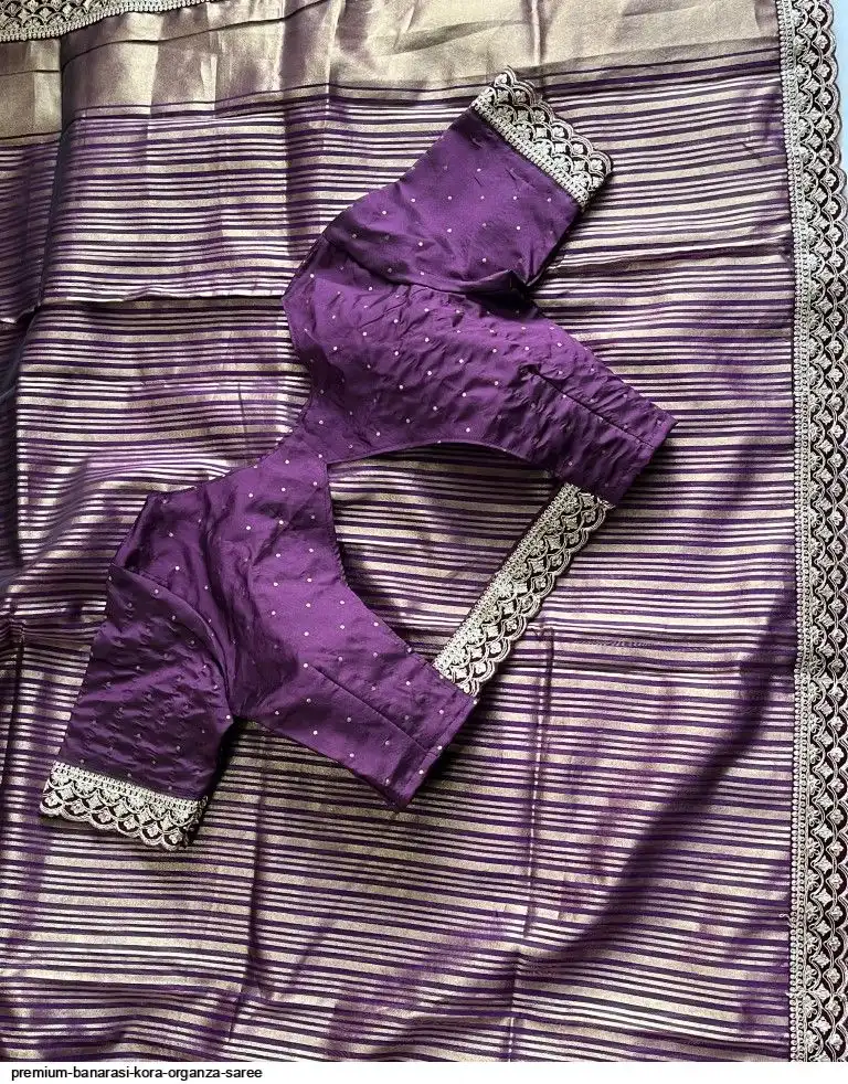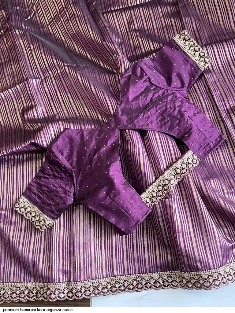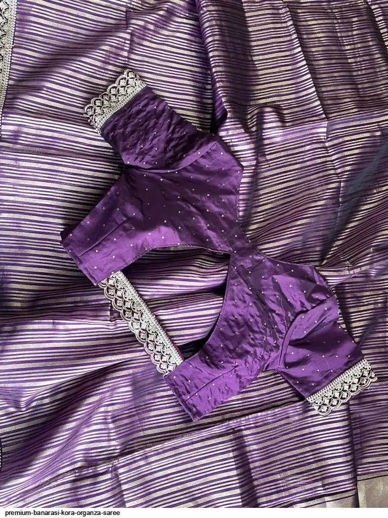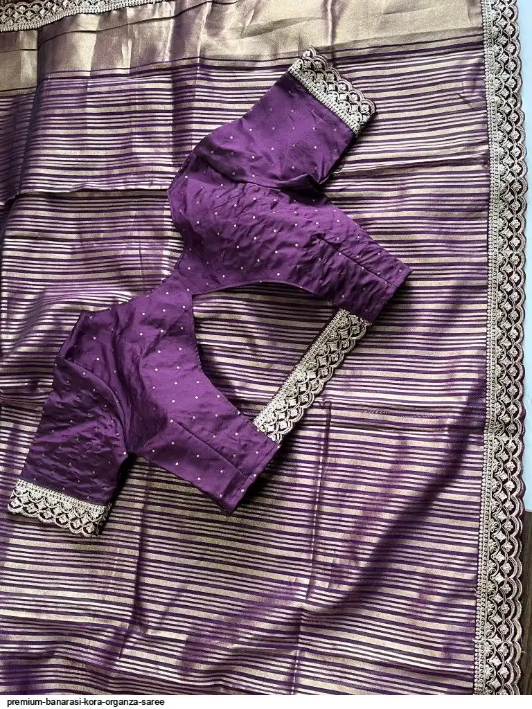 Banarasi Kora Organza saree with all over weaving stripes on saree