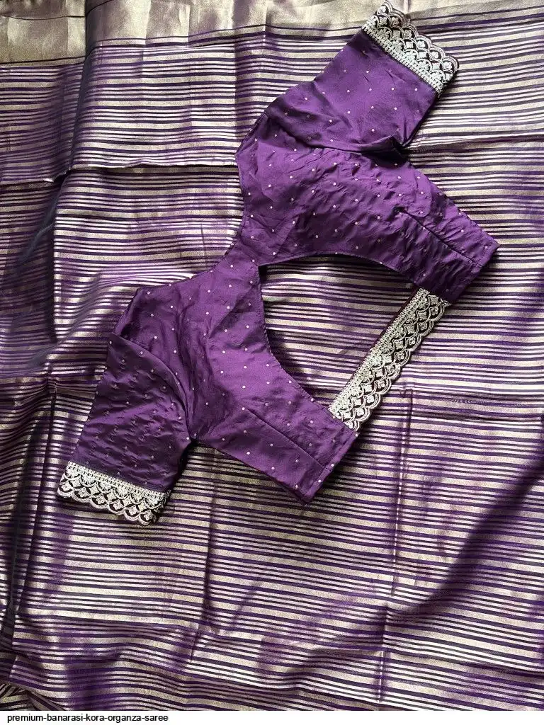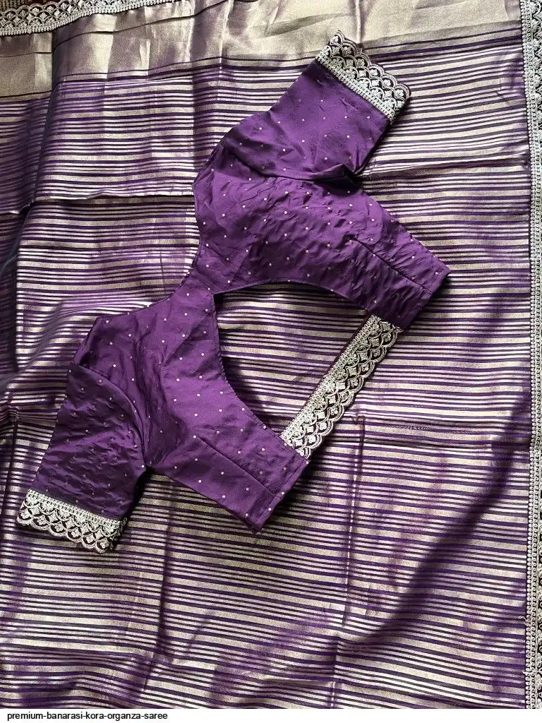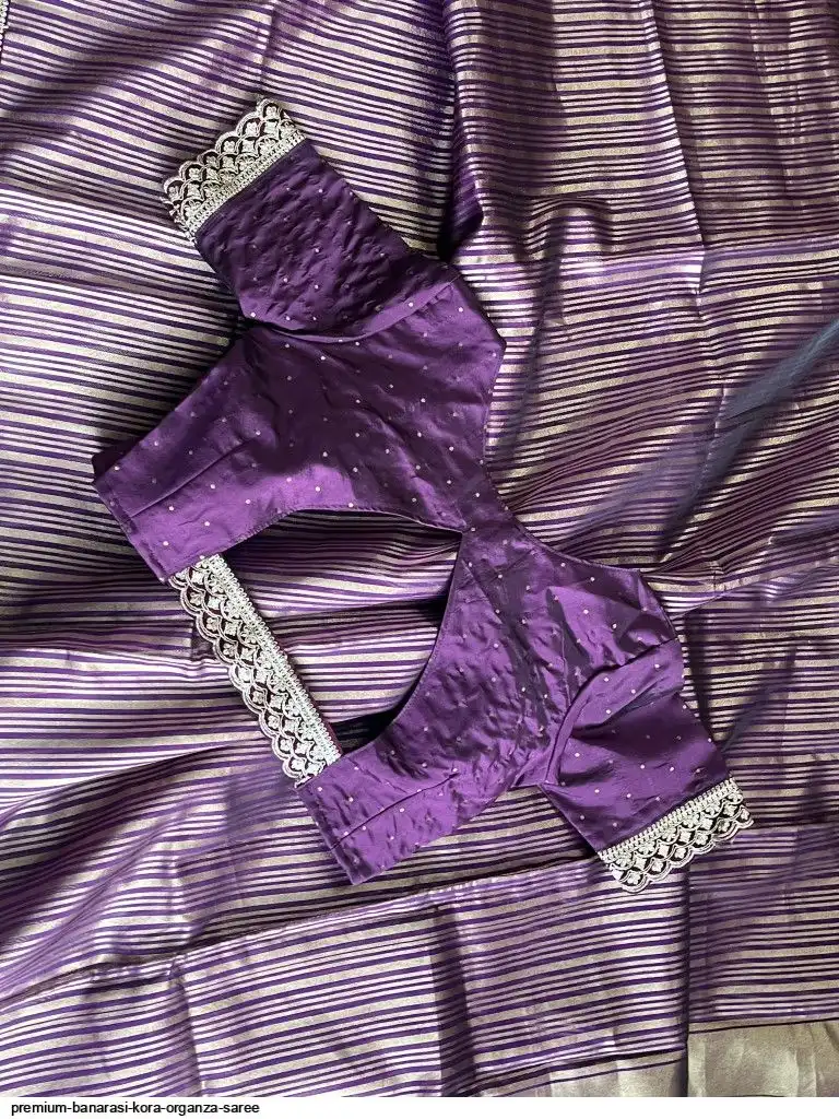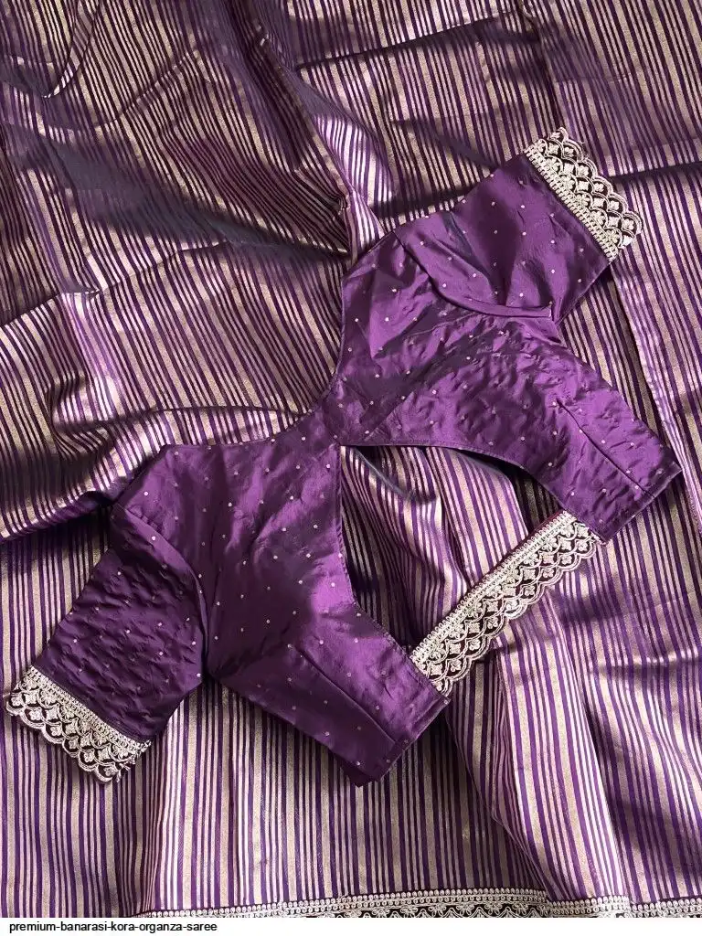 Banarasi Kora Organza saree with all over weaving stripes on saree