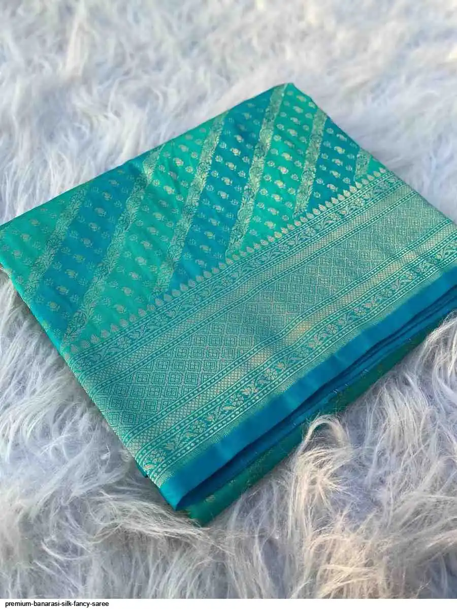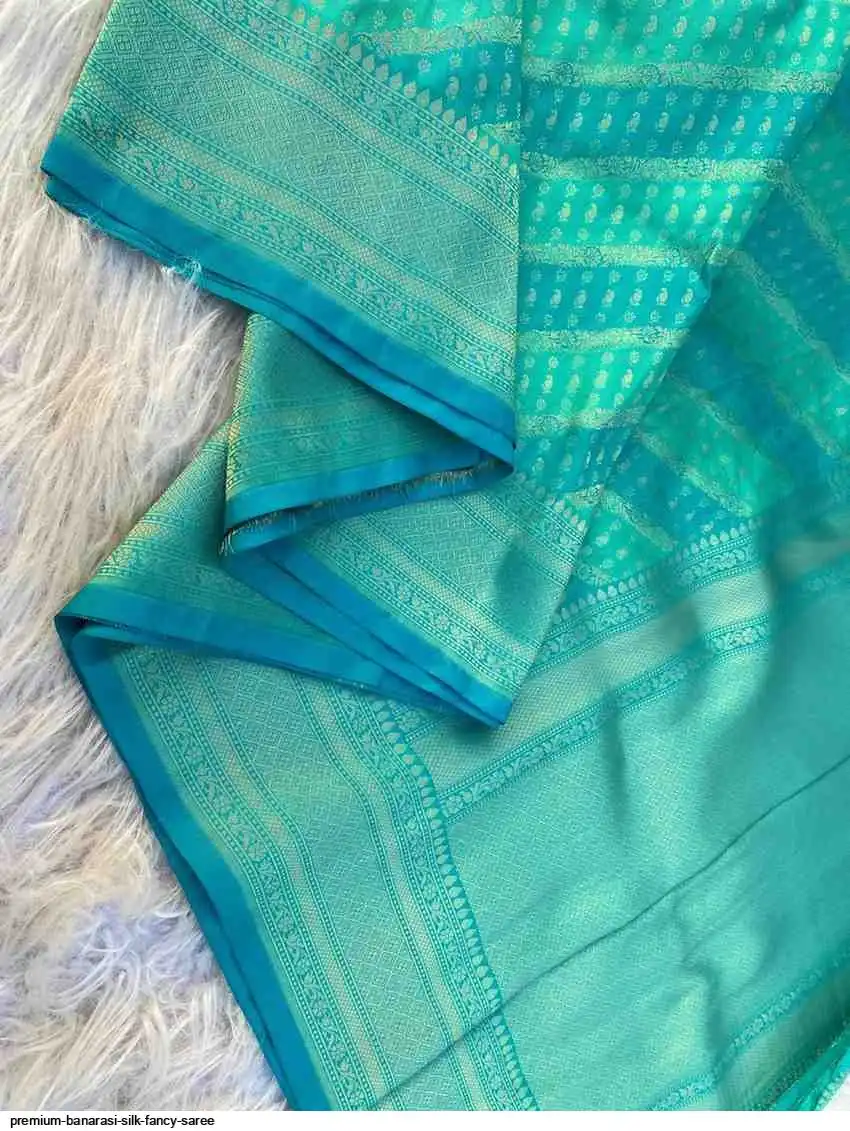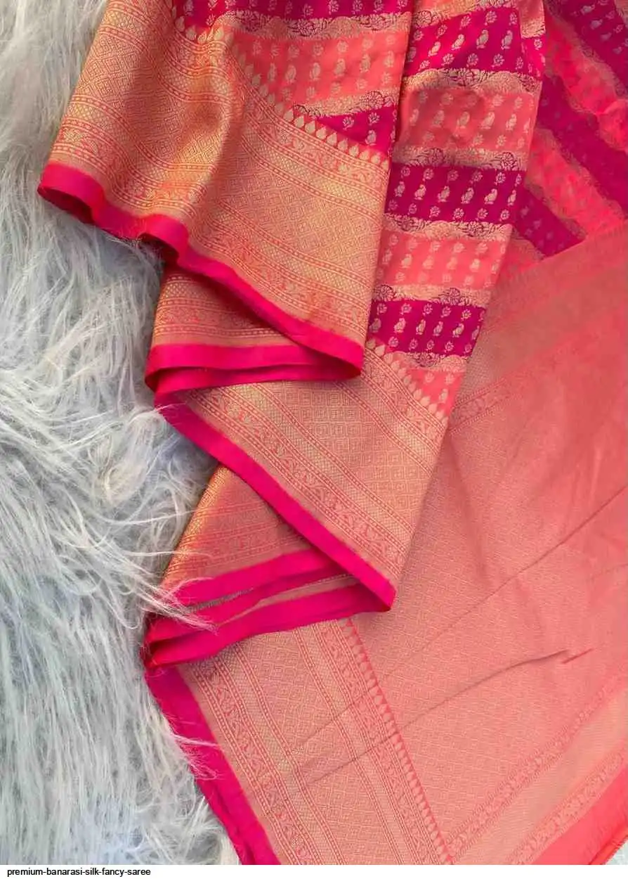Description - Premium banarasi silk sarees with all over Rangkat leheriya weaves, Contrast pallu.
