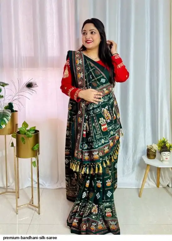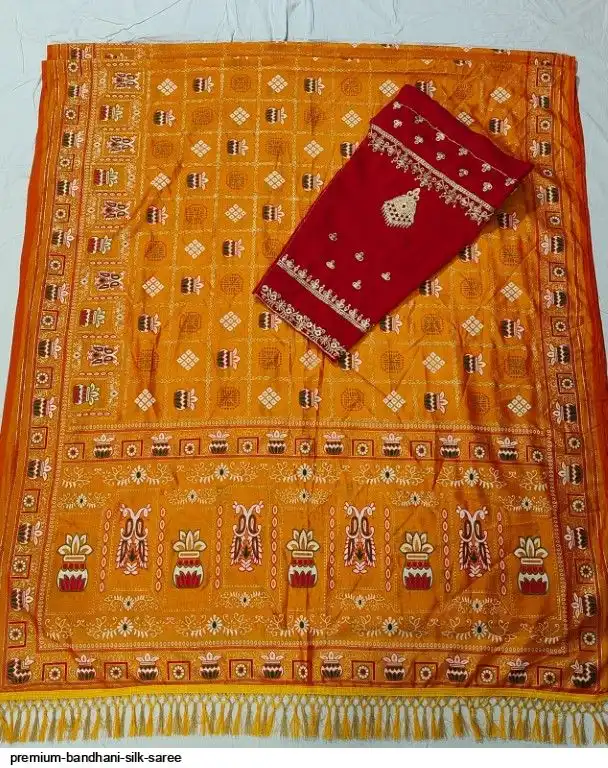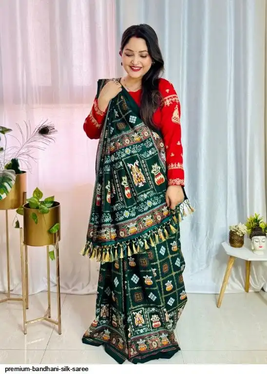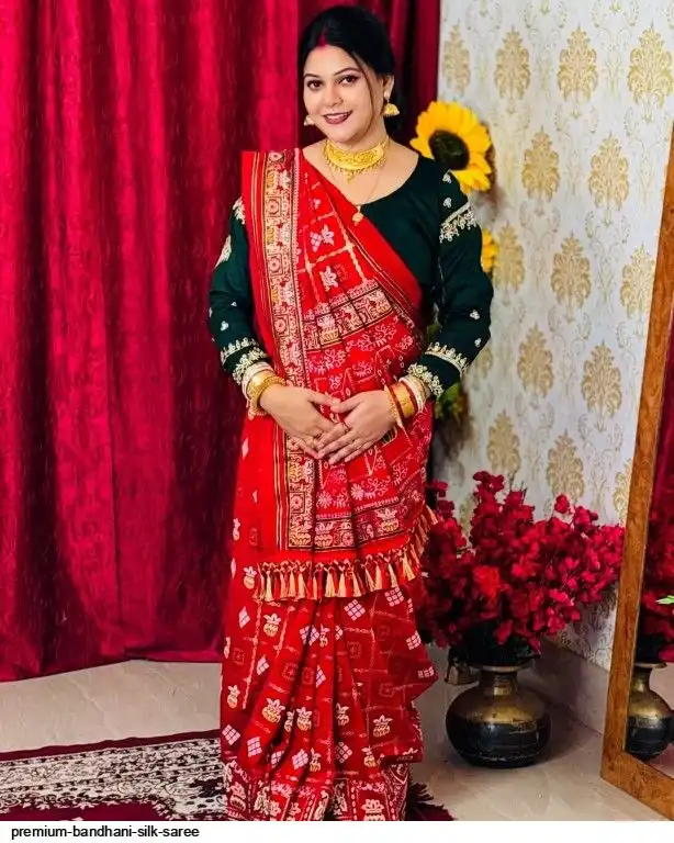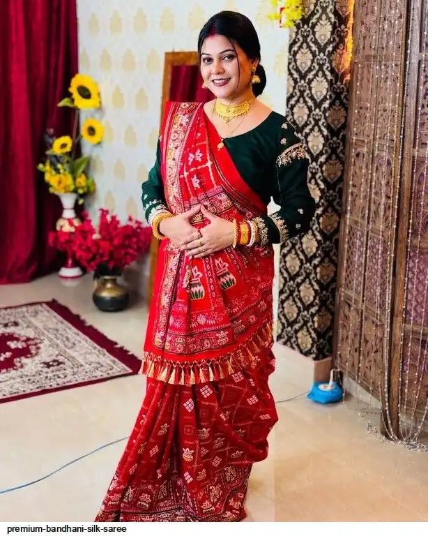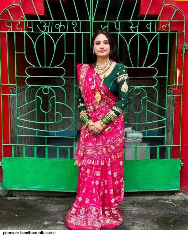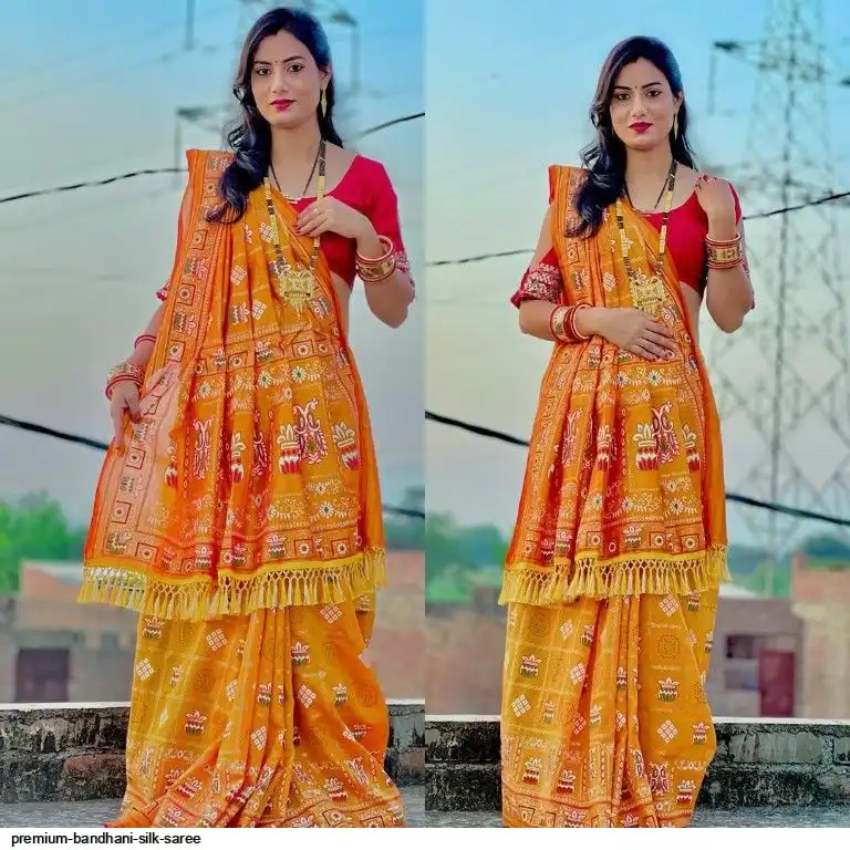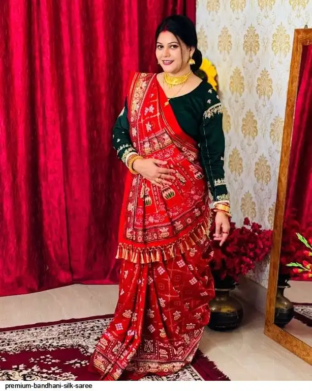 “Draped in elegance, tied in tradition – Bandhani Magic!”