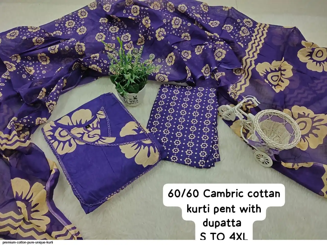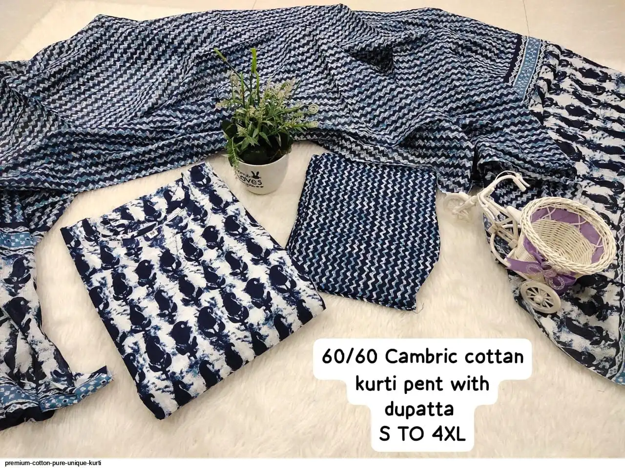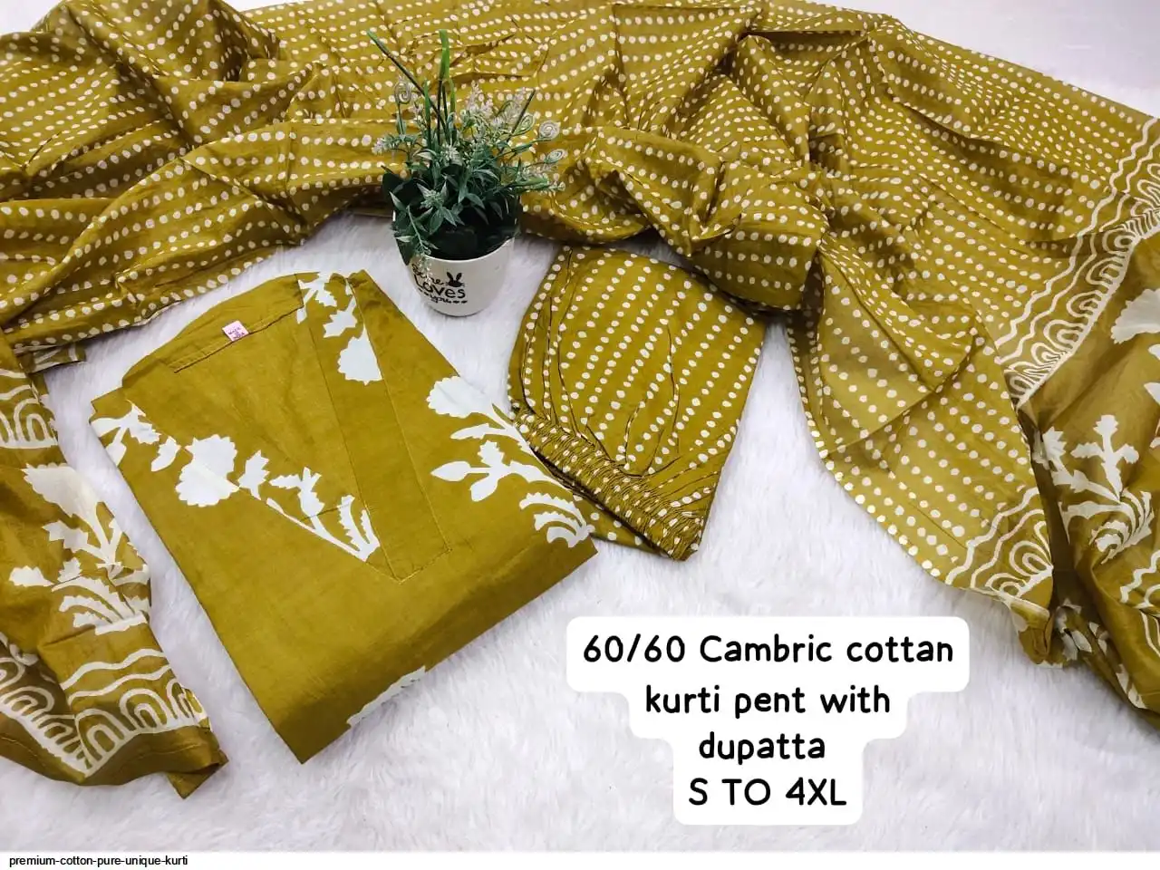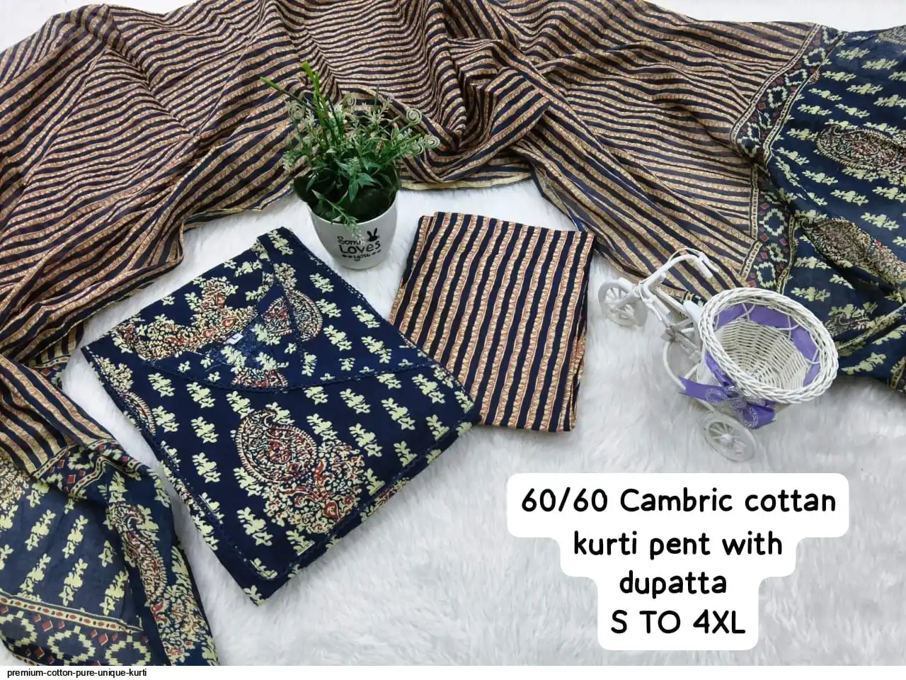 Premium Jaipur cambric cotton kurti pant with dupatta